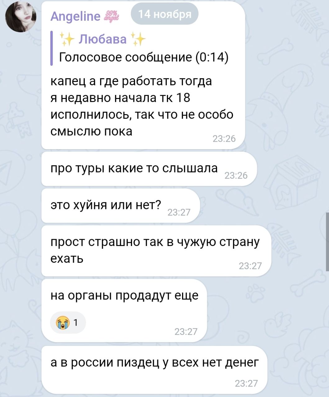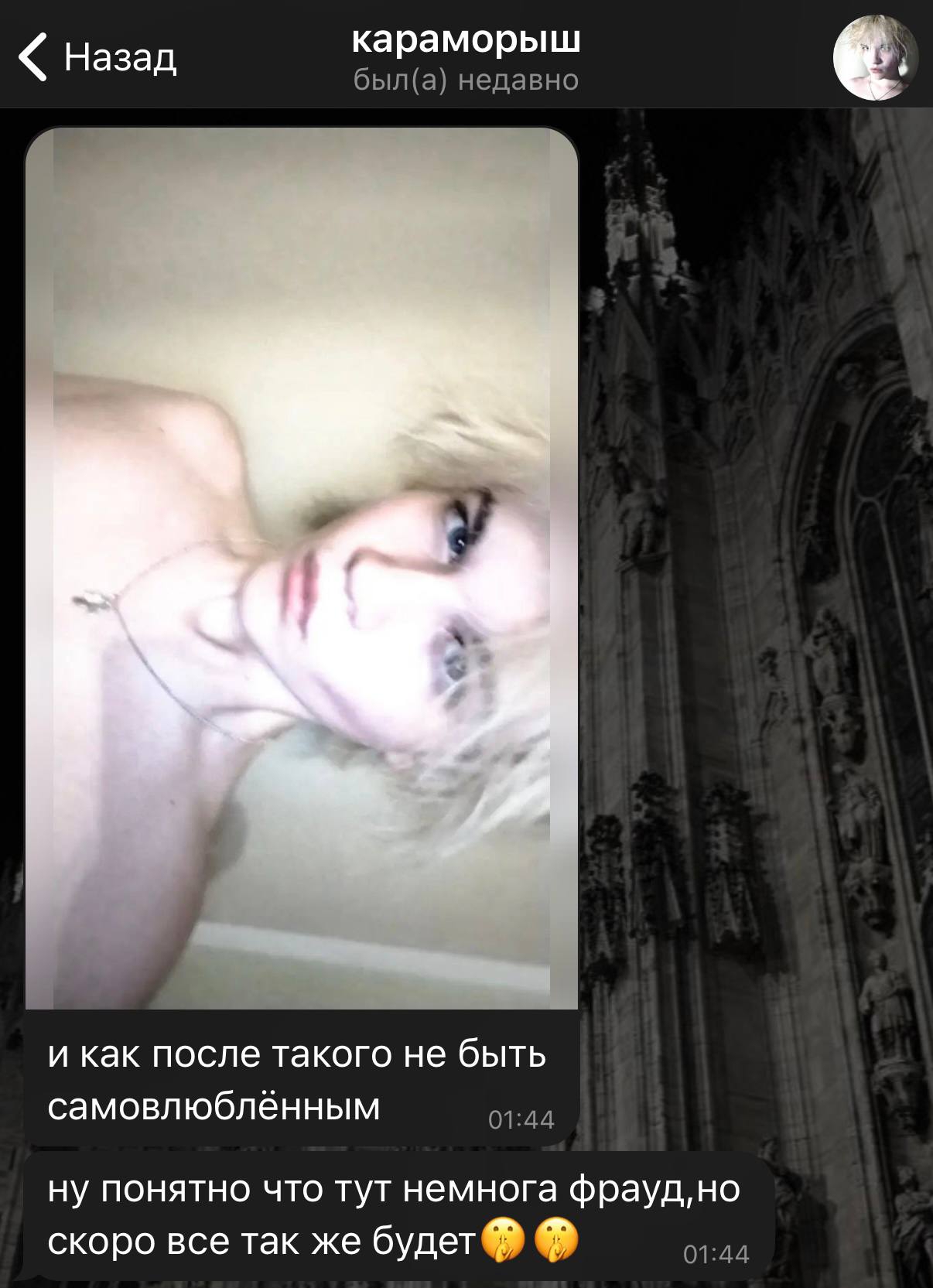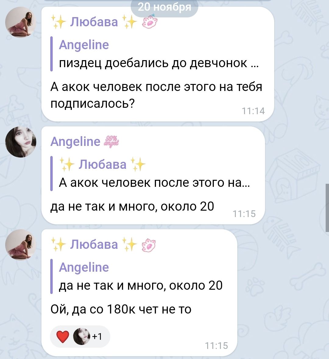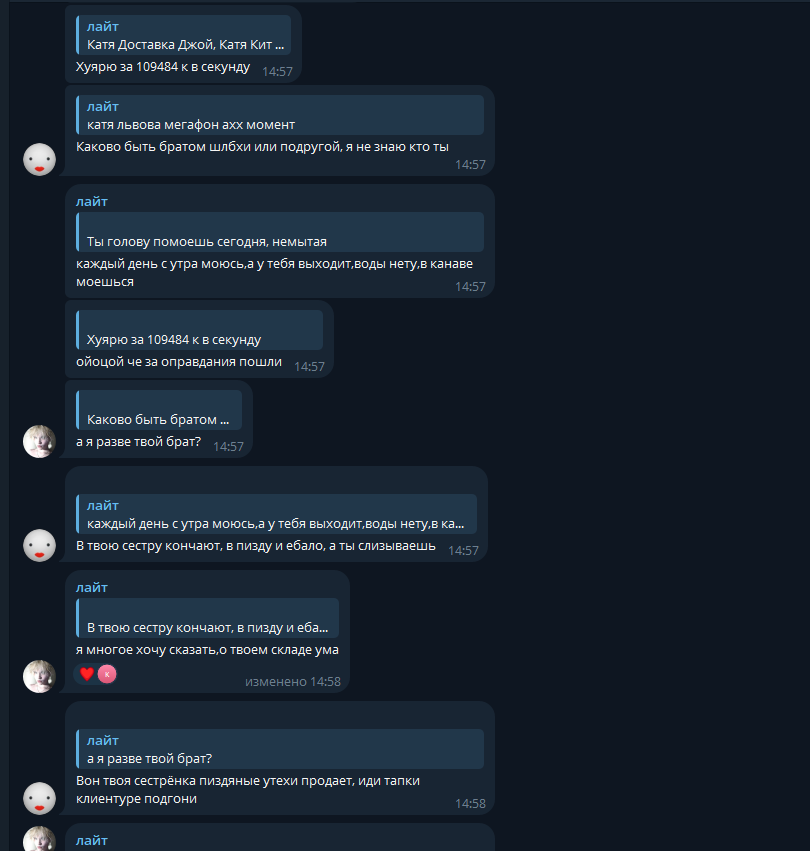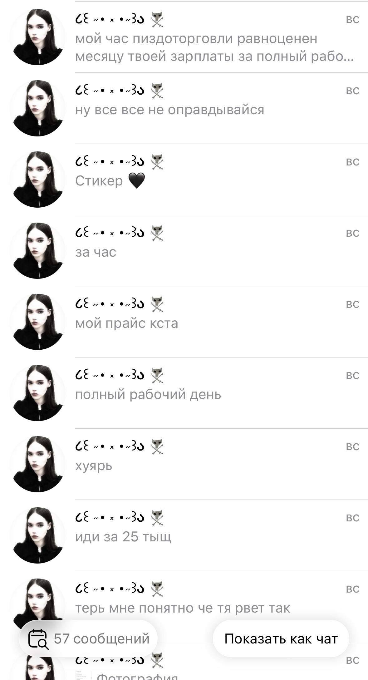 В последнем посте в тг караморы начался сущий кошмар. Пришла базированная тян и стала шеймить за пиздоторговлю. Рой семиклассников во главе с боссом-анимеунитазом ополчились на нее, защищая проституцию (это разве не статья в рф?). Причем пиздят ровно так же, как защитники чмораморы тут: «ты старая/страшная/завидуешь». Долбоебы прям не палятся, что не вылезают отсюда