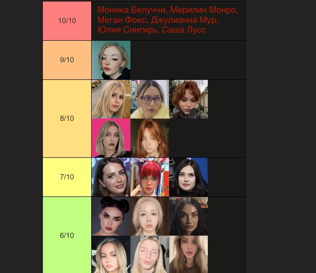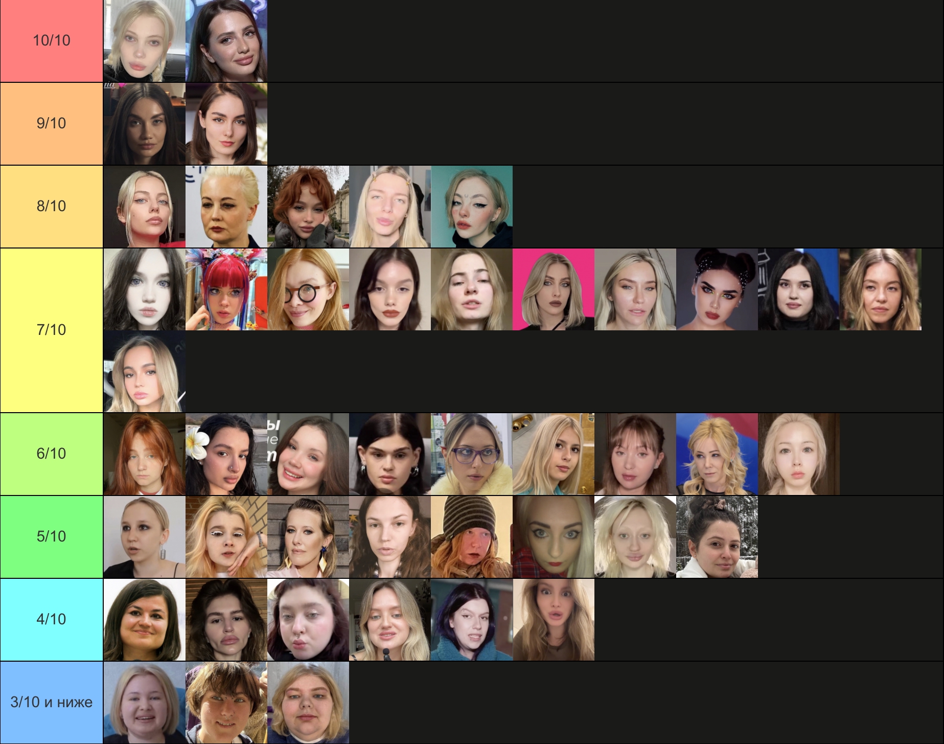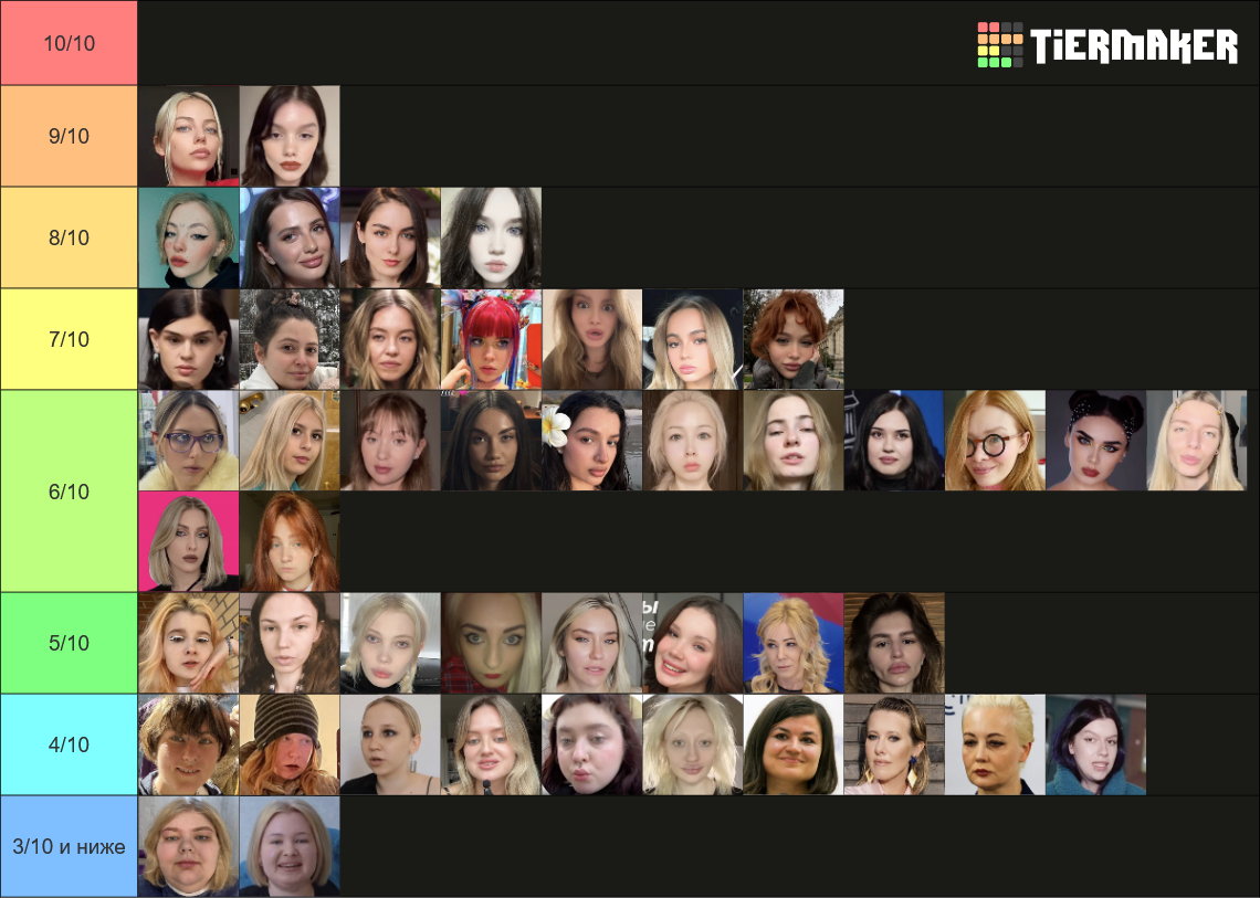 Бл, не успела. Но ладно. Попробую, попытаюсь объяснить. Для кого-то это возможно будет оправданием. Половину из этих девушек я не знаю, могу судить только по фото, что были представлены. Выбирала субъективно, просто по своим каким-то предпочтениям. Капланиху я не уважаю, как человека, и никогда не интересовалась ею, кекала только со срачей, которые были с ней связаны. Но её внешка мне +- нравится. Дроча на Кищук я не понимаю, в целом, она внешне как-то меня отталкивает. Фанаткой Клэп никогда не была, да и вообще её никогда не смотрела, но в целом, как по мне, черты лица у неё гармоничные. Про всех остальных хз, что сказать. ИМХО