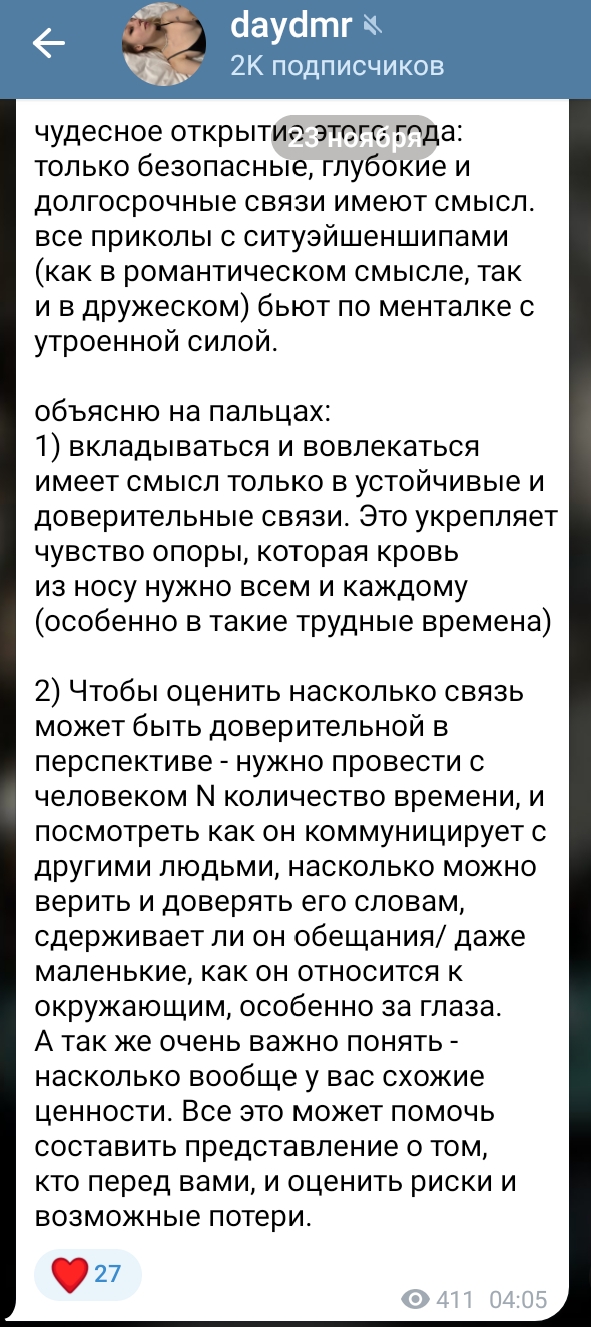 >>6346105 Либфем-промывка однозначно есть. Только весь этот самоходный движ реально подойдёт каким-нибудь биполярщицам или социопаткам, которым вот такие случайные связи по кайфу и не наносят урона, а в нормальных отношениях они не проживут долго из-за бедобашковости. Если женщина серьёзно настроена на крепкие долгосрочные отношения, то конечно такие связи только разъебут менталку ещё сильнее (хотя возможно в этом цель Светуса).