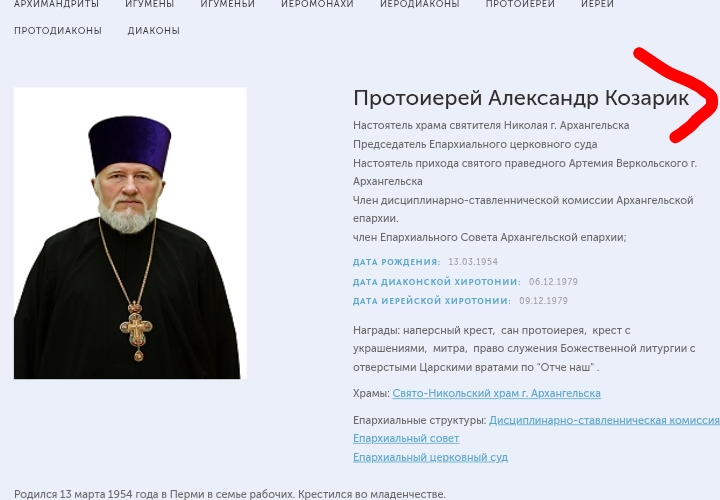 Тут такой жир Девичья фамилия матери Козарик. Отчество Александровна. Внимание дедулик член дисциплинарной комиссии епархии, председатель суда. Че у них там творится вообще. Это же прям сюжет для новости
