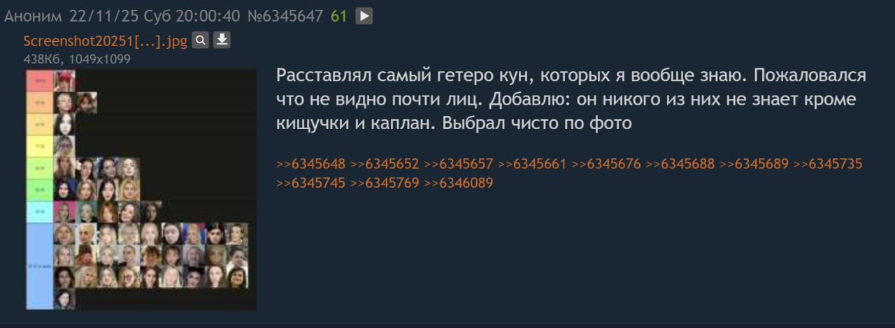 Я давно здесь сижу, тут всяких персонажей много, но форс этой пизды начался вот последние дни буквально. Какое то странное совпадение, просто вот унылую слюху с ее унылыми родственникам форсят из всех щелей на фоне падения у нее заработков. Конечно, это не она сама набег организовала, шоб хомячье побежало в телегу и стали актив поднимать.
