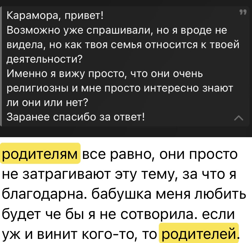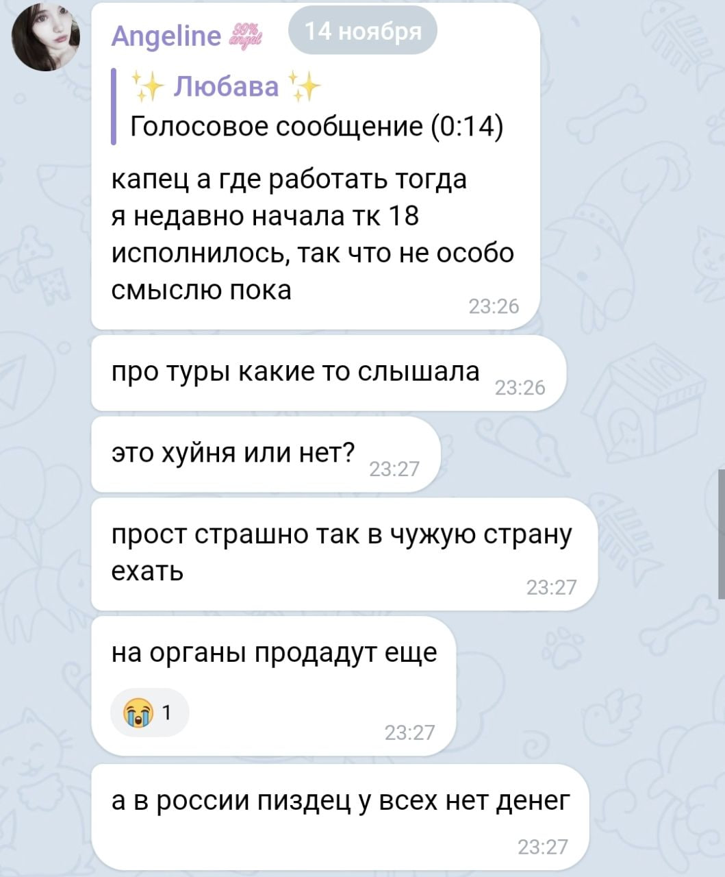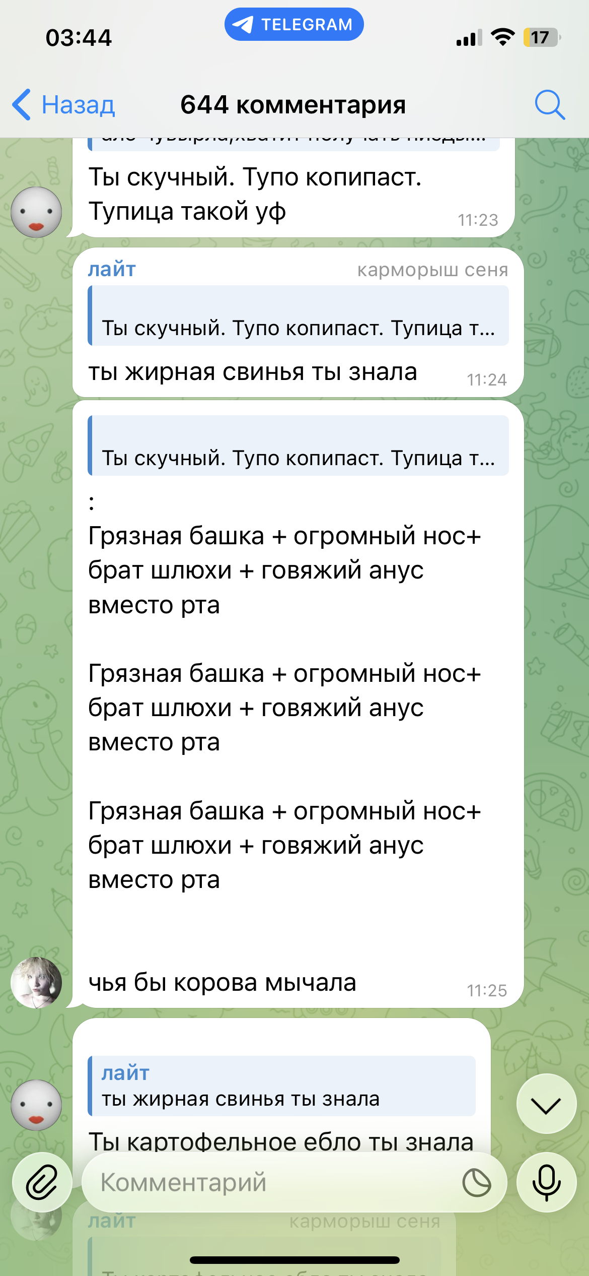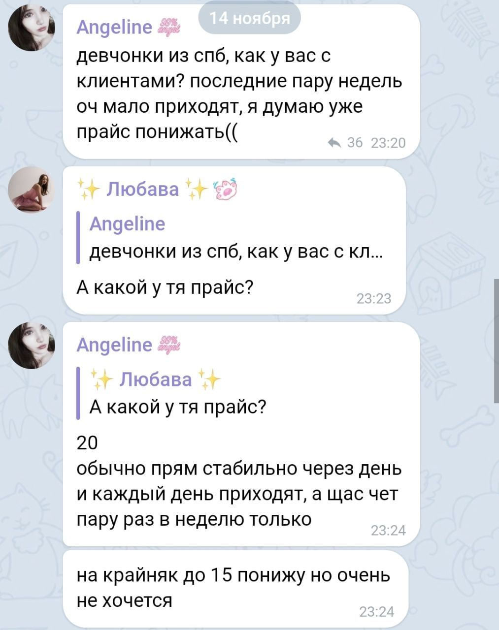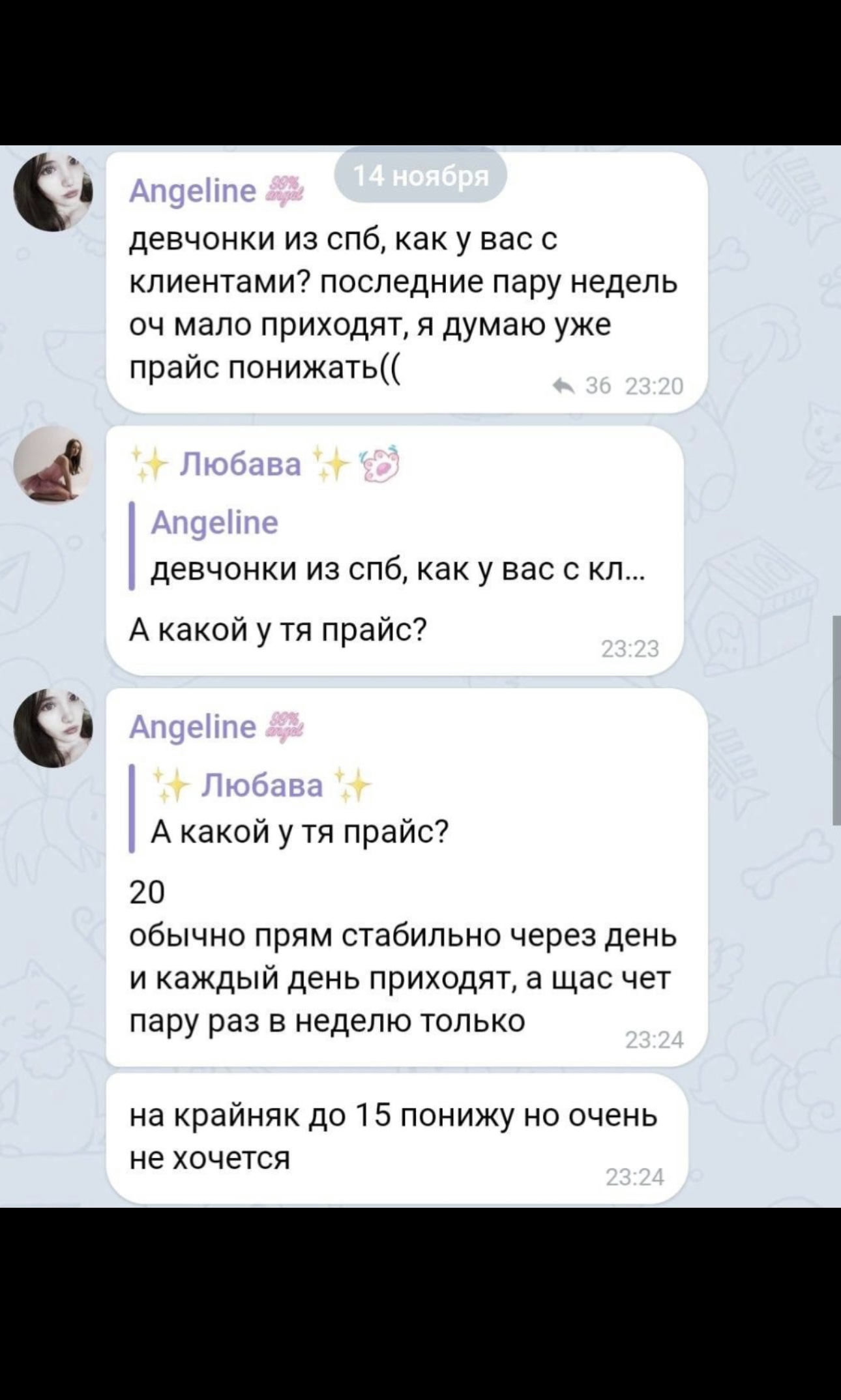 Как я заебалась читать слив этой рандомной тни. То что она занимается эскортом это печально и опасно, чего карамора не понимает из-за возраста. Но это не повод для травли.