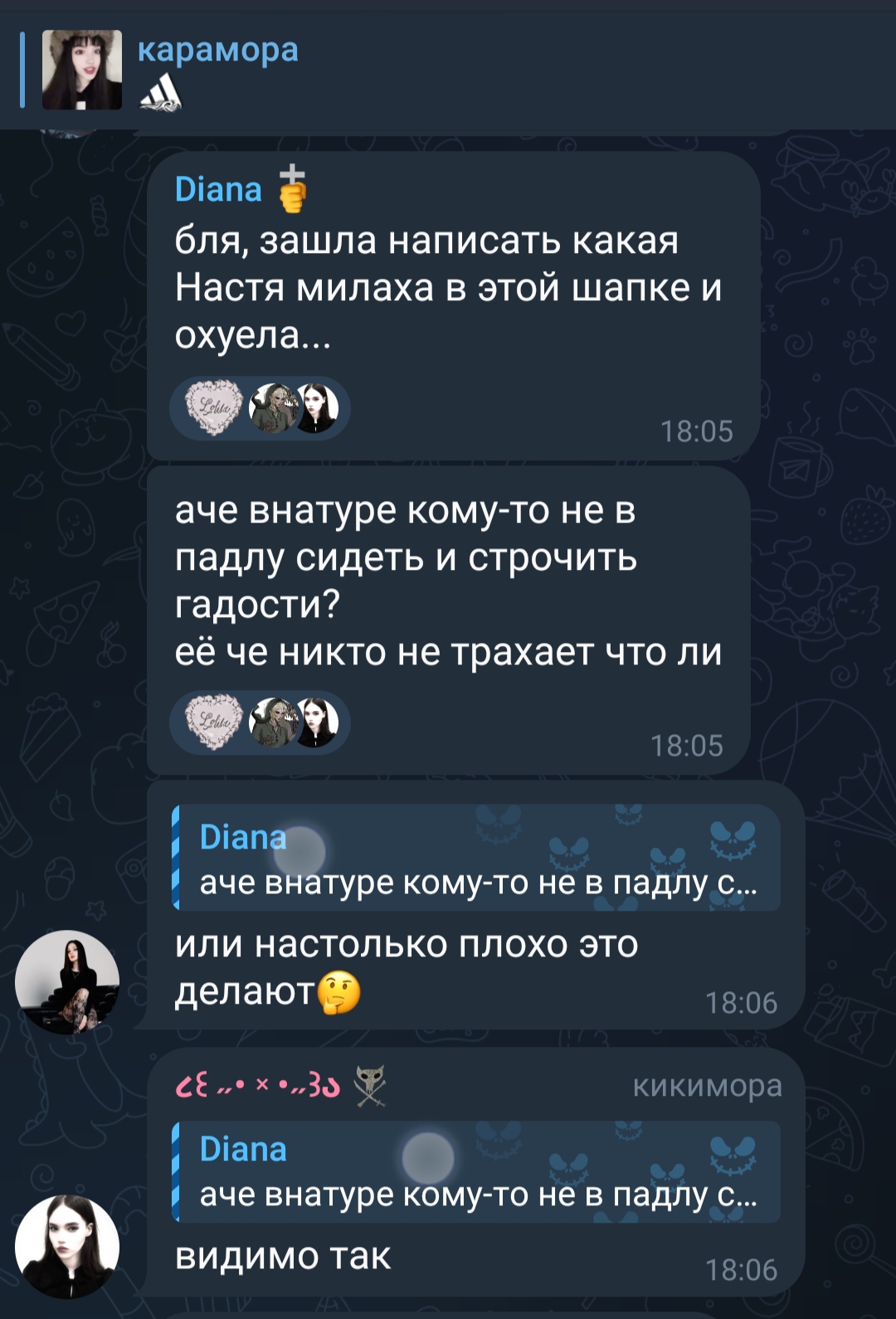 сливщицам и шизичке-доставке из коммов в тгк не желаю добрых снов.