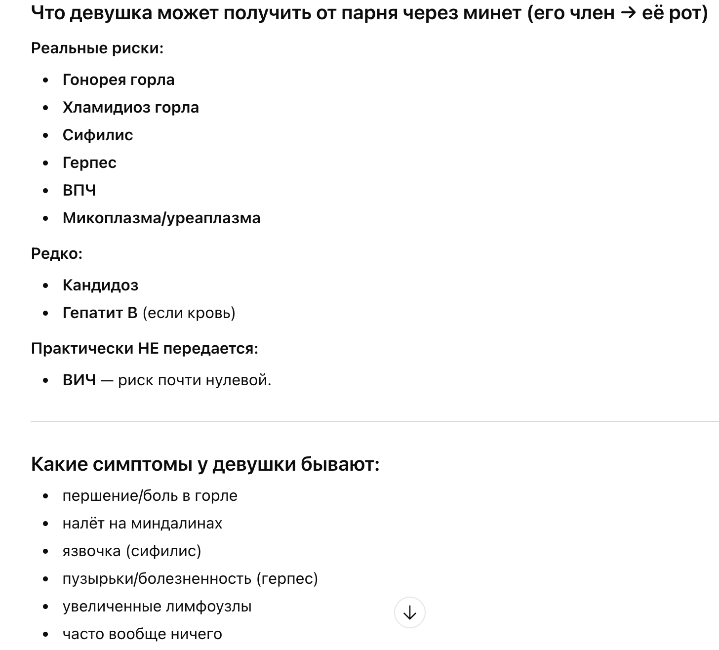 >>6351393 Кроме того что она может забеременеть, у нее в минете без презерватива есть классные шансы подхватить вот эти венерические хиты. Почему карамора на ашу не смогла зарегаться? Или по анализам не прошла, или не смогла выложить фото без фильтров. Так что может быть она уже с болезнями и активно передает их скуфам-клиентам.
