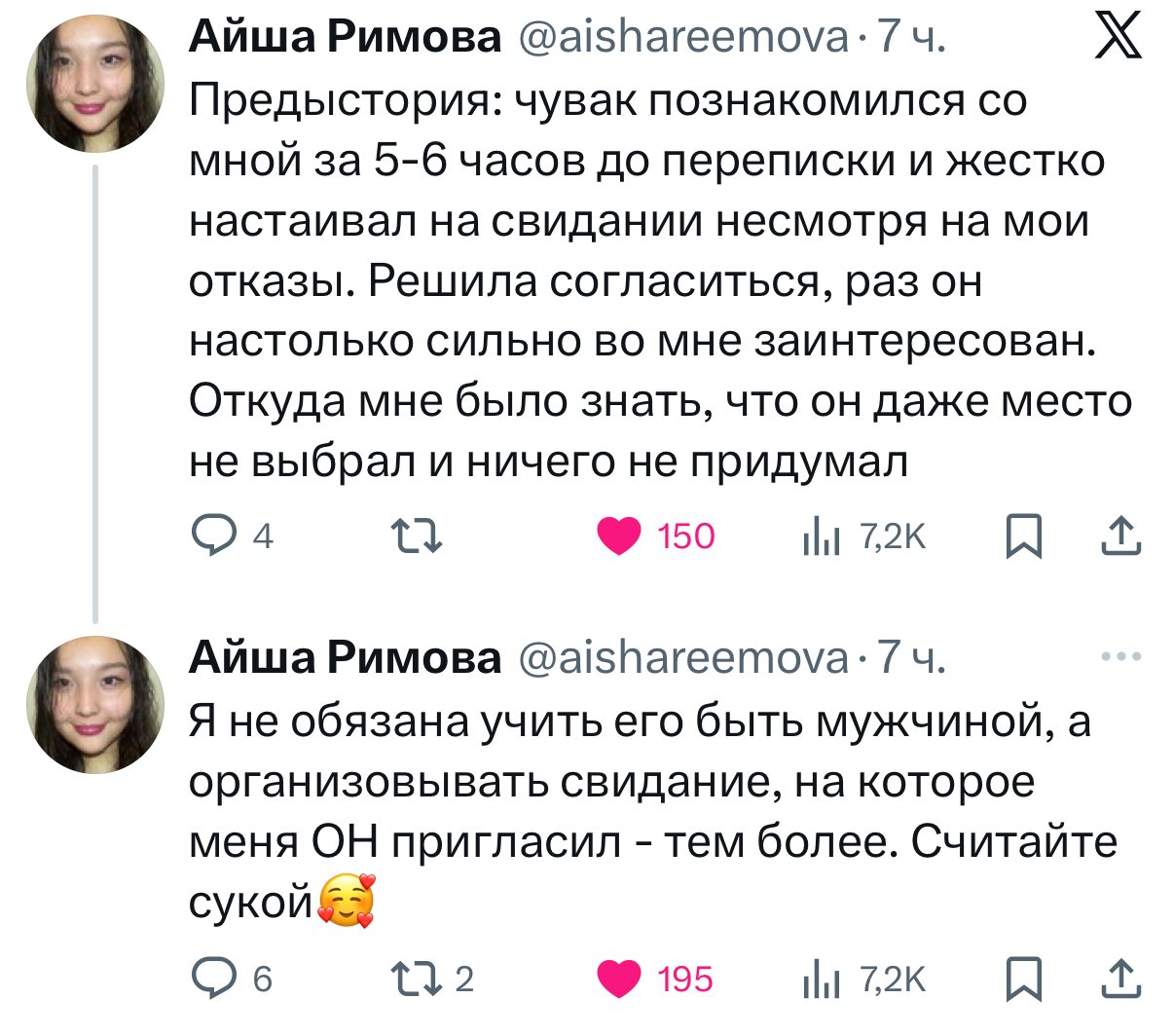 >>6351952 >Но в целом не понимаю концепции "пусть мужик решает куда мы идём". Я хочу сама решать В хуйню идти можно и отказаться. Это банальная вежливость и показатель интереса. Если хочешь видеть человека пиши четко: пойдем жрать ребра или на выставку говна в севкабель. А там в процессе уже можно адаптировать. Пук-среньк выглядит жалко. мимо_лесба_приглашаю_так_тян