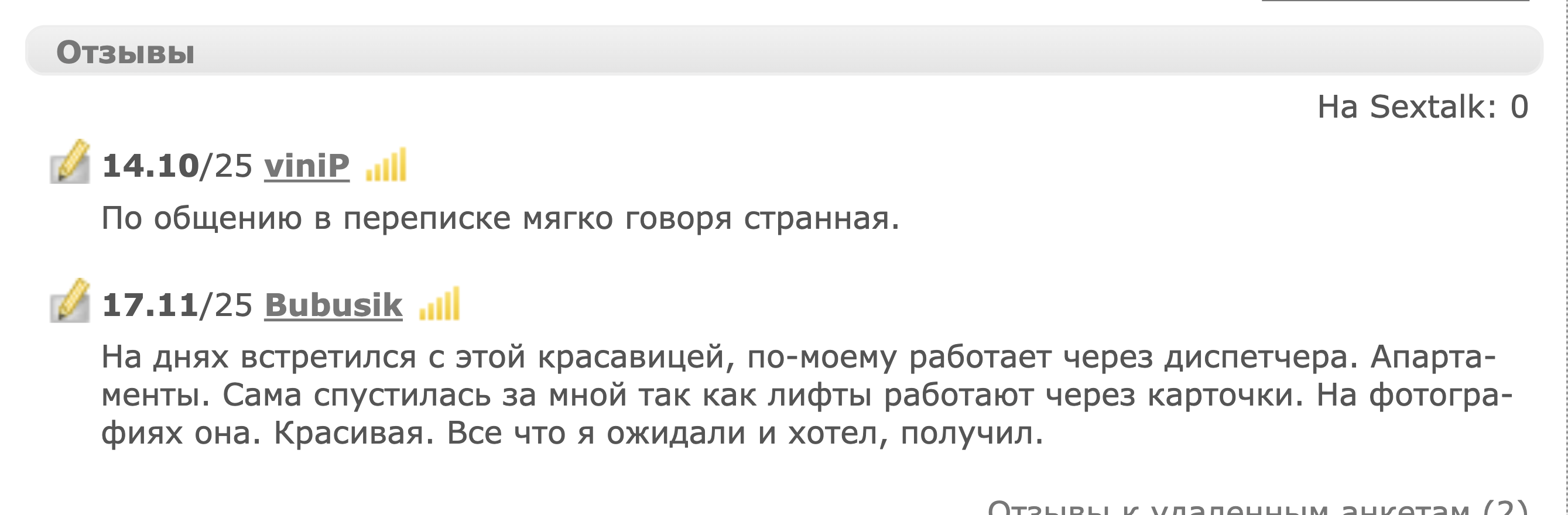 >>6351408 Да. В треде шлю-хохо-дов говорят с ее прайсом девушки обычно идут на ашу, это было сказано в ответ на ее нытье о том что клиентов за 20к стало меньше. А на интимсити она получает хуевые отзывы и пересоздает анкеты, больше ничего не остается. Вообще изначально за 10к в час сосала