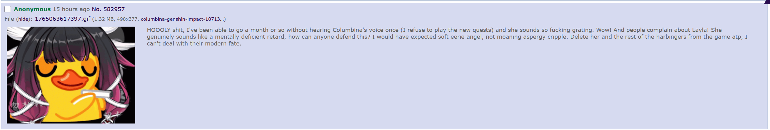 >Женские персонажи обсуждаются только в парадигме female gaze. Сексуализированные арты/косплеи/etc. с тян уходят в /gacha. Смотрю, это позорище от обиженок все еще таскают из шапки в шапку, ору нахуй.
