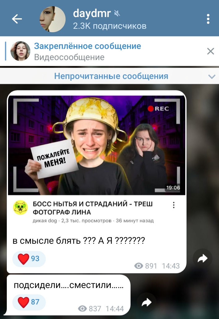 Давно хотела принести персонажа, хз интересно ли будет или нет, но в двух словах. Раньше иногда натыкалась на асмрщицу с ником номори https://www.youtube.com/channel/UC60MMCLTEwgeSJqOJBxAu0A. Залетела на ютуб еще пиздючкой 12-13 лвл в аудиторию нитакусечного и странного асмр. Сейчас ей 16. В этом году заметила странное поведение в видосах, которого раньше не было, появилась дерганность, странные формулирования мыслей, зацикленность на ненависти к себе и своему контенту. В своем недавнем ролике призналась, что сидит на нарк. Говорит что это плохо и все такое, но продолжает романтизировать. Кста, еще момент, в одном из видосов еще говорила, что типо "у меня нет будущего, но у меня милое лицо, поэтому пойду после 18 в эскорт" Будущая Карамчмоха 2.0