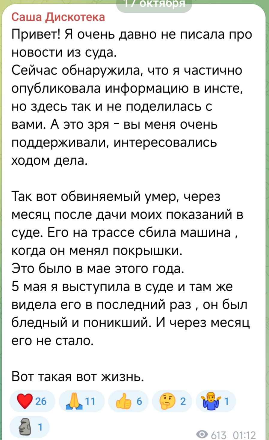 >>6367853 >Вы бы что выбрали заключение на максимум 8лвл. (Обычно на 5й год уже могут выйти) или такая случайная смерть? Для жертвы лучше знать, что насильника больше не существует и он не сможет причинить вред.