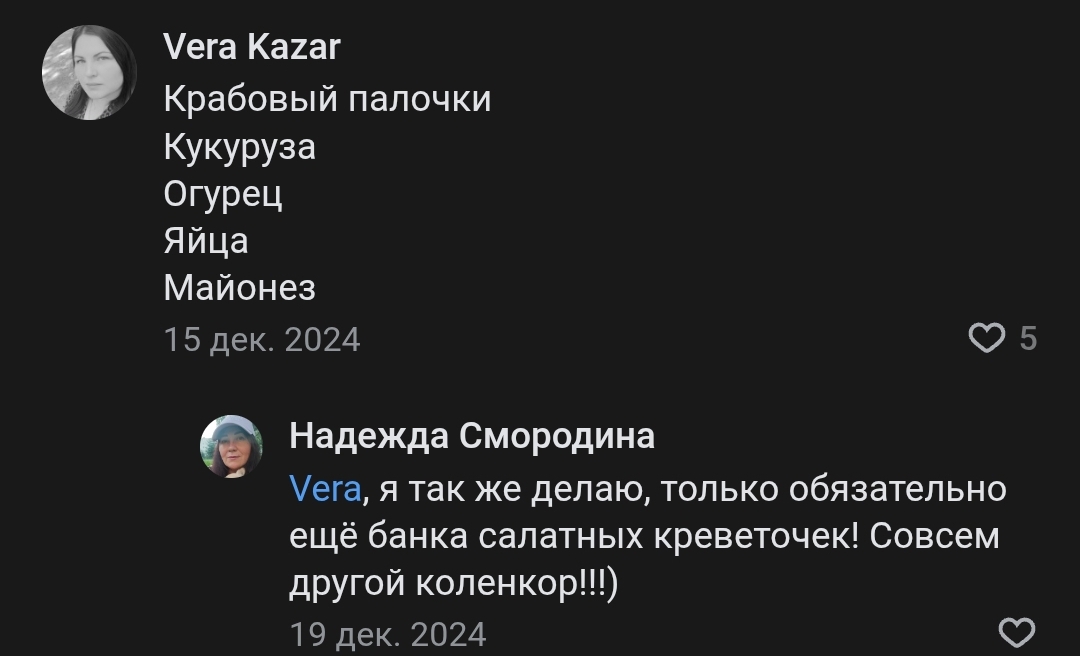 Сисы, посоветуйте свой любимый рецепт крабового салата. Буду благодарна даже за классический вариант, который вы готовите, только по возможности с пропорциями. Я вот выбрала 2 каких-то рецепта, но наверное остановлюсь на втором варианте и добавлю туда баночку креветок. Что думаете по поводу разбавления майонеза греческим йогуртом или сметаной?