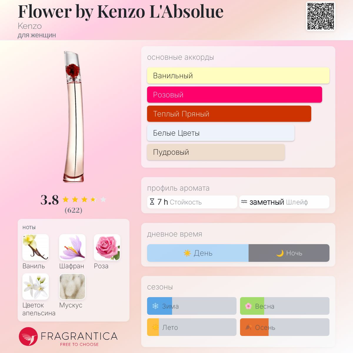 Обменяла 100 мл Kenzo Flower на 50 мл Kenzo Flover L'Absolue. Никакой ностальгии по классическому пудровому варианту, зато получила универсальную прохладную розу. Оч кайфую с распылителя. При первом приближении всё нравится, без особого восторга, но и отторжения не вызывает, будем посмотреть и пробовать в разные температуры