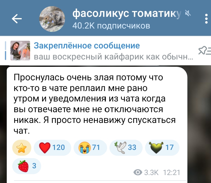 >>6379185 Да у нее вообще будто нет постов ни на какие темы, кроме нытья, как она не вывозит, умирает с ребенокм, как ей тяжело, как нет ни одной свободной секунды. Карлик, напоминаю, даже на каэсочку время находит без проблем. Я не настолько погружена в лор. заходила на их каналы что-то типа в 2019 когда была пиздючкой. И там были посты уровня "закладка в книге ххахаха немногие поймут эту тонкую отсылку к тому, что я бракованный наркоскам"