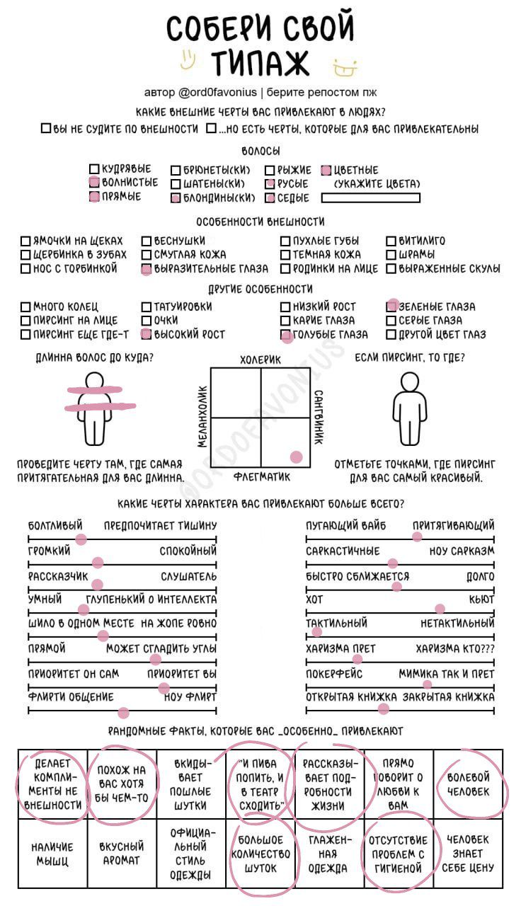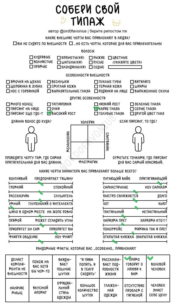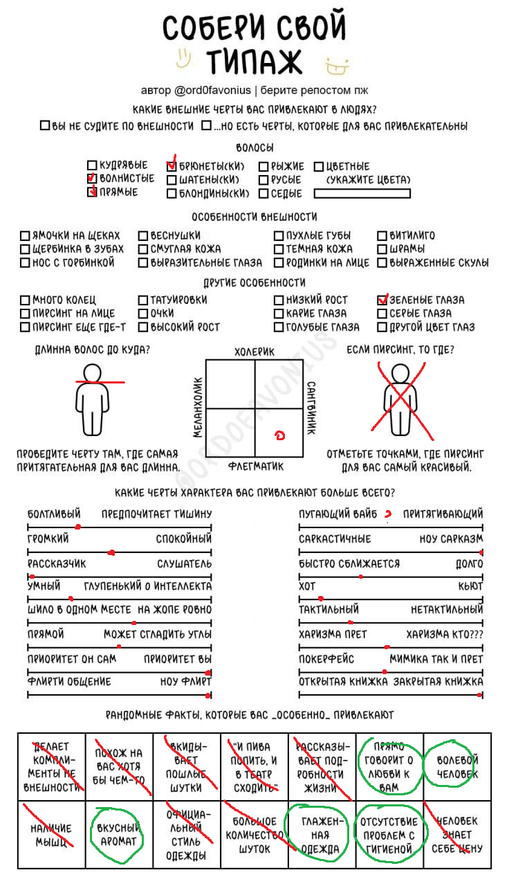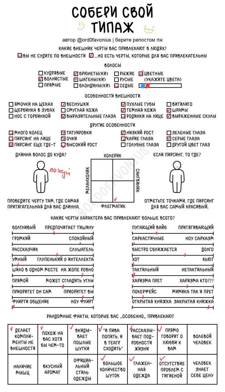 Мда, я думала это про девушек, а оказалось про чуханов. Первые пункты про родинки-пирсинг--щербинку-ямочки на щеках это прям дефолт предпочтения нетакусь любительниц нетипичной красоты.