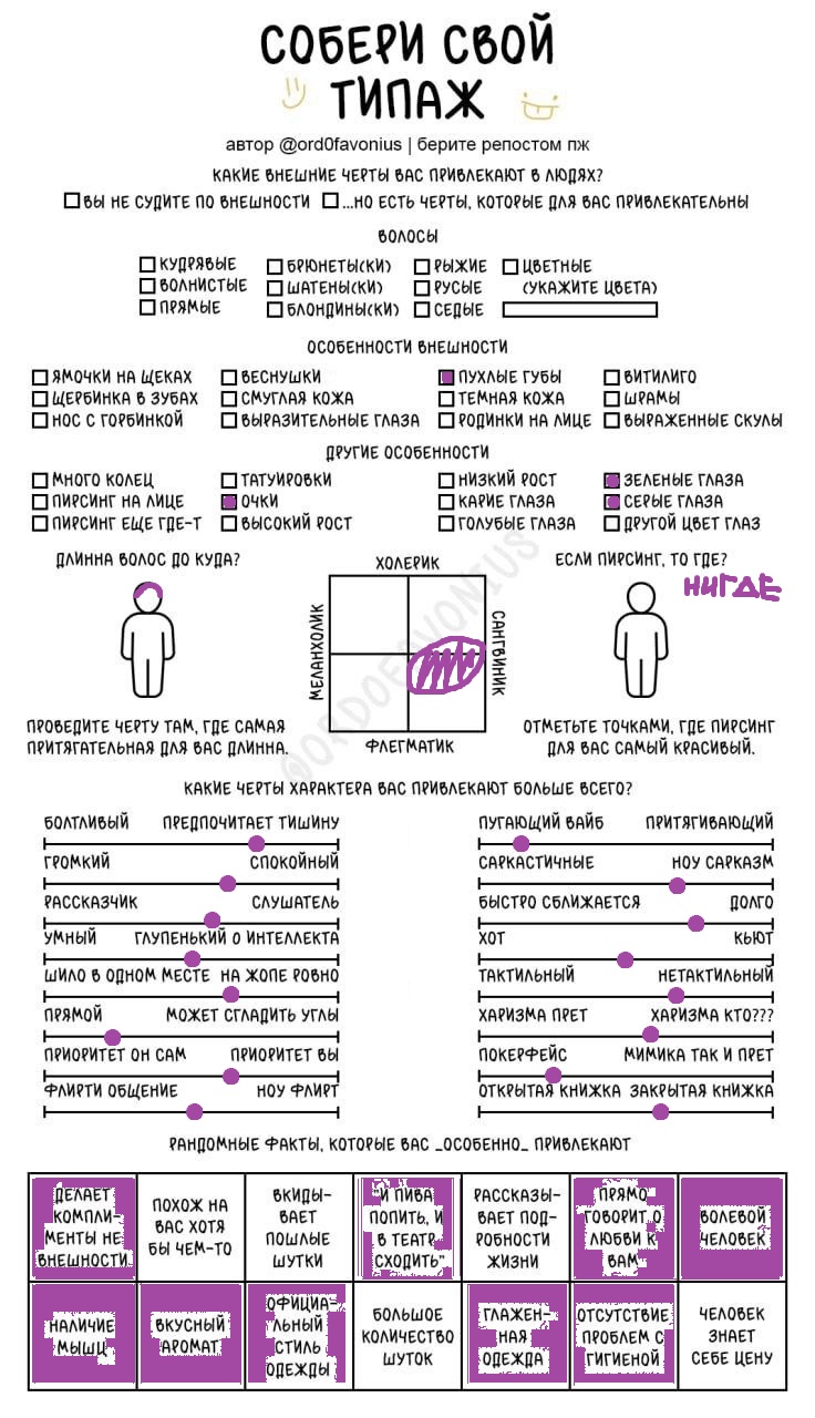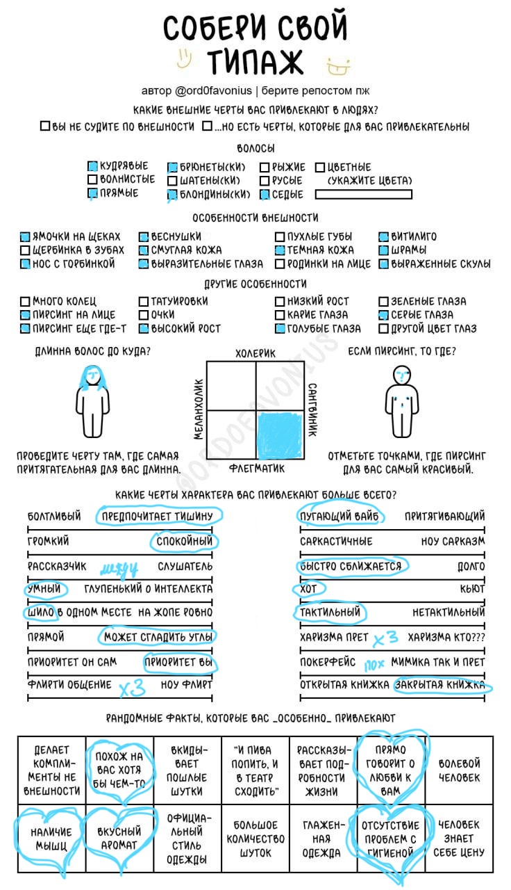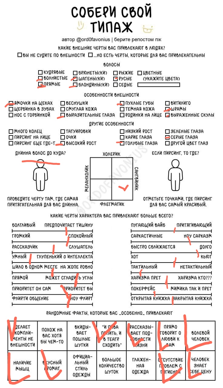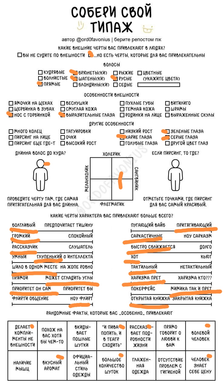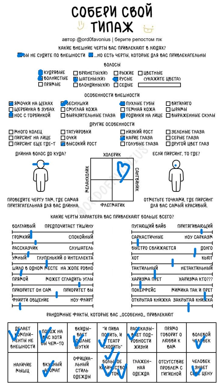 Мда, я думала это про девушек, а оказалось про чуханов. Первые пункты про родинки-пирсинг--щербинку-ямочки на щеках это прям дефолт предпочтения нетакусь любительниц нетипичной красоты.