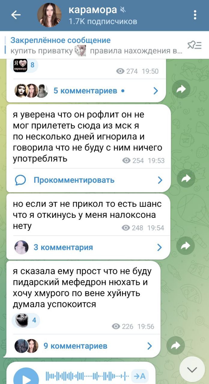 >>6382223 >>6382563 Ору, это комментарии у этой тянки под постом со скринами от росова. Все таки тянки, которые сами рвутся в такую тусовку и аудиторию – это обладательницы диагноза, тупости и безотцовщины в ее самом негативном проявлении.