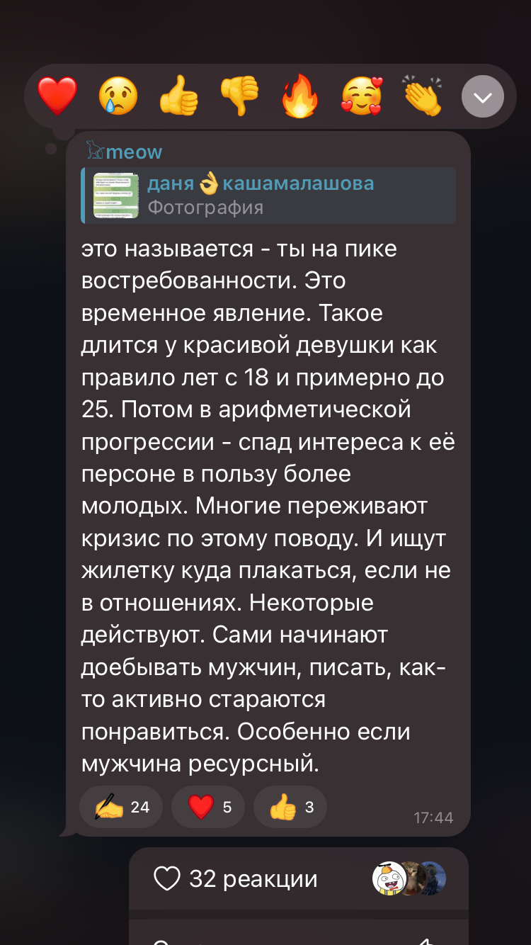 Но я так пыталась общаться с хуями в интернете. Не понимала, почему я стараюсь отвечать сразу и помочь, а меня нахуй постепенно в игнор кидают. Наивная и тупая была.