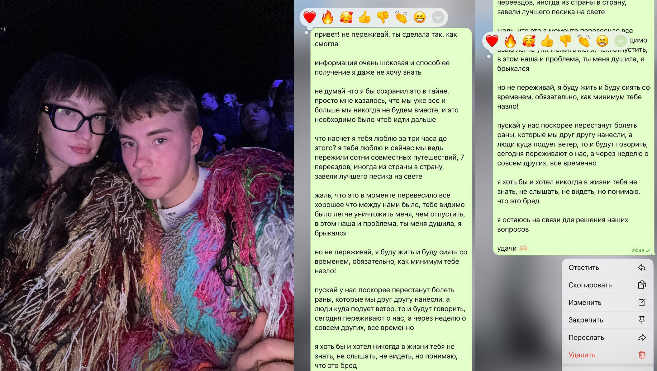 Но тут Лиза подтирала ему жопу на протяжении всех отношений, вытаскивала из депрессий в 0 лет, мучалась с визой, поддерживала его диджей говносеты. Но все равно это она мразь, она все вынесла на публику