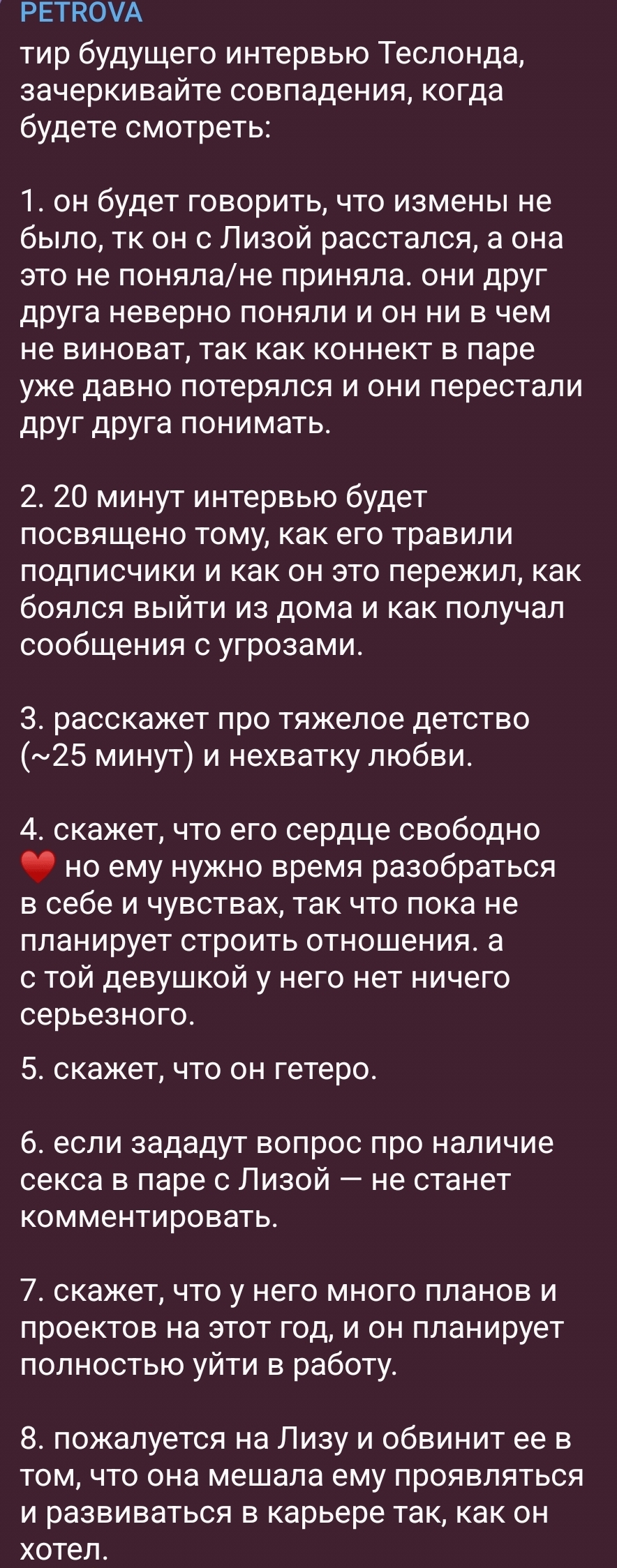 И вот Лиза и Теслонд так друг о друге пупунисто отзывались всегда, хот от Теслонда устойчивый вайб пидессы.