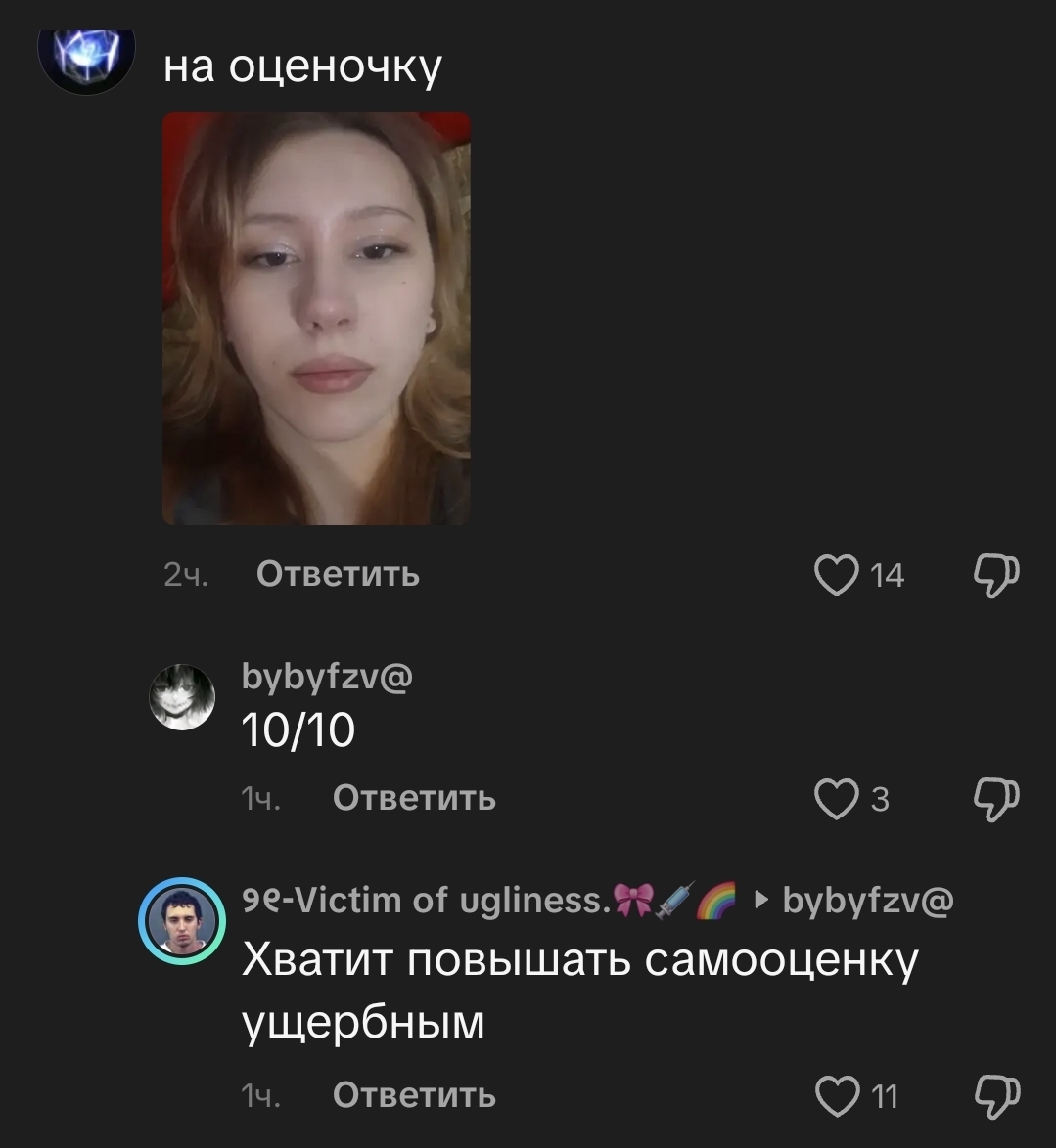 Выгляжумаложи бабсраки возбудились в комментах. Хвастаются зпр как чем то хорошим в 5% случаев, в остальных просто коупят. От создателей «мама в 70 выглядит на 35 и никакого ботокса», что это за болезнь такая кстати, моя мама моя дочка