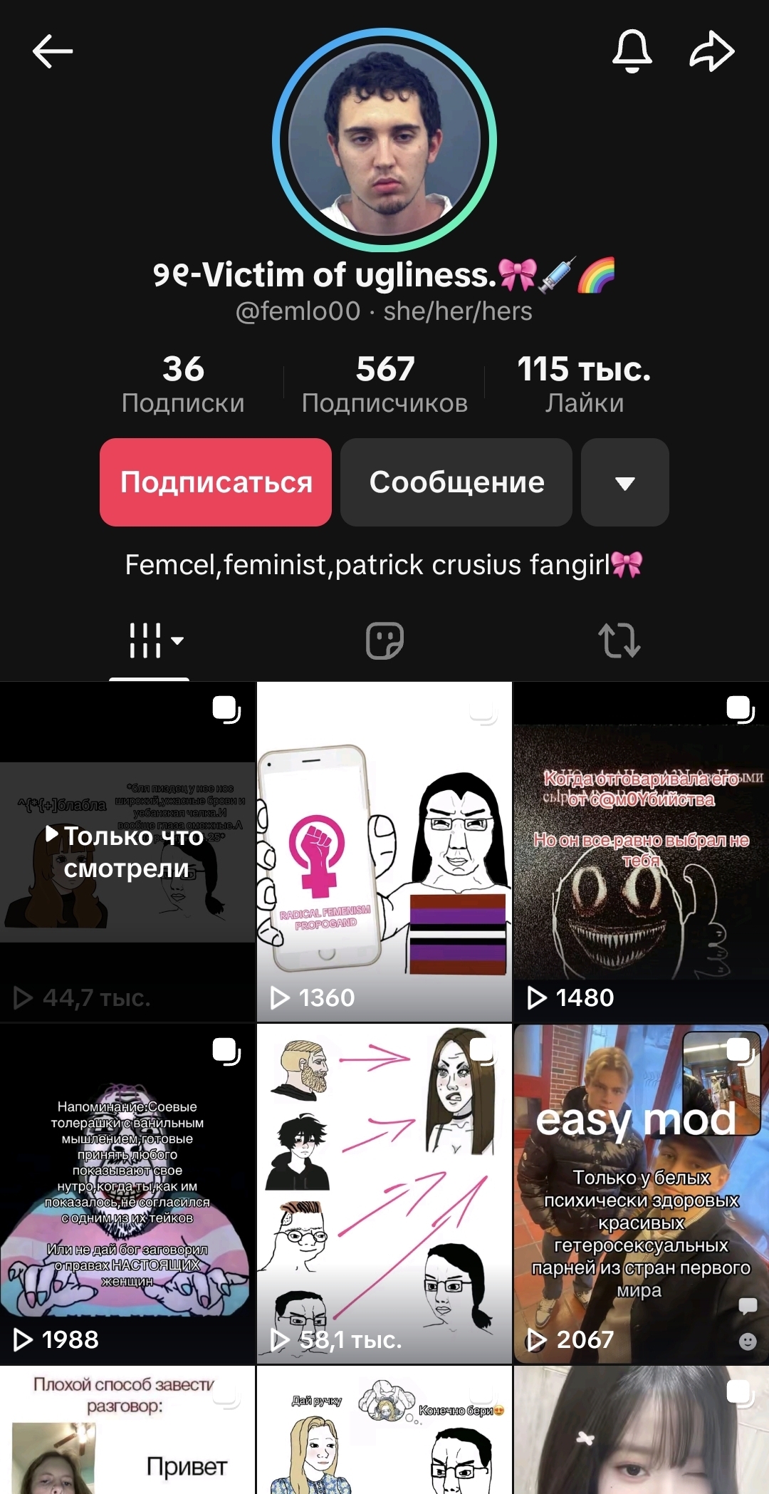 >>6393207 Пикми какая то с жаждой внимания >>6393210 Может и чушок. Но один хуй мизогинка вниманиеблядь, эти «фемселки» у бондика, видела рожи некоторые и близко не фемцелы включая саму бондичиху