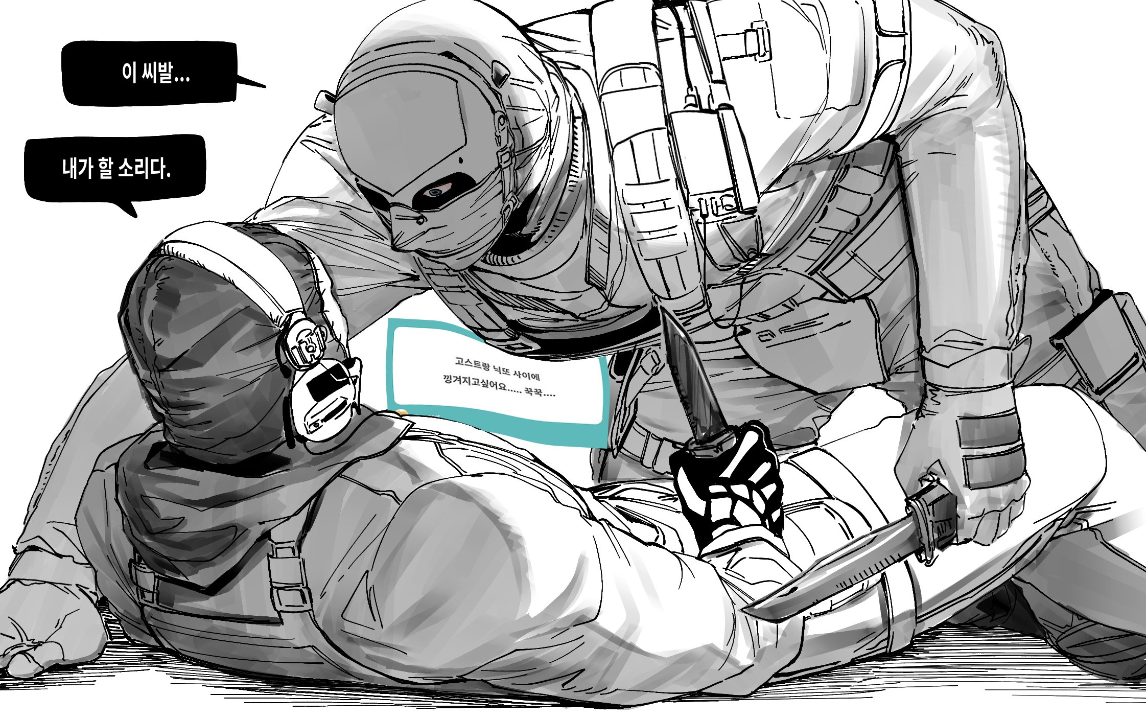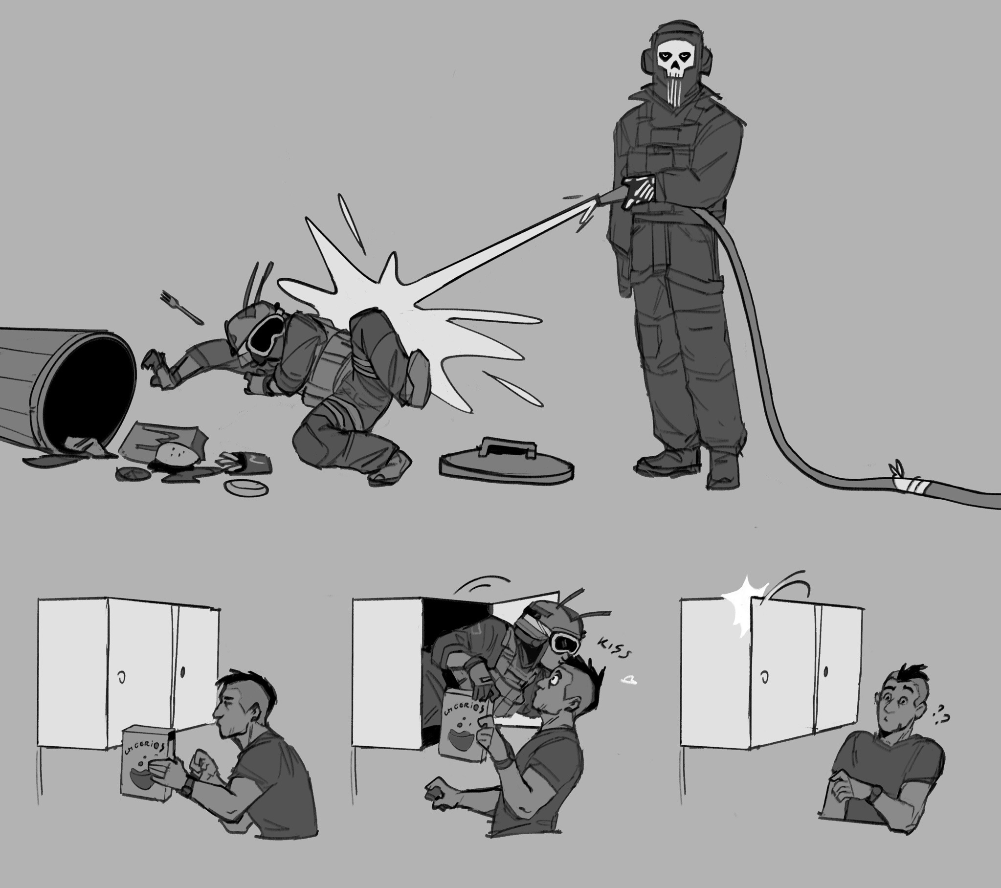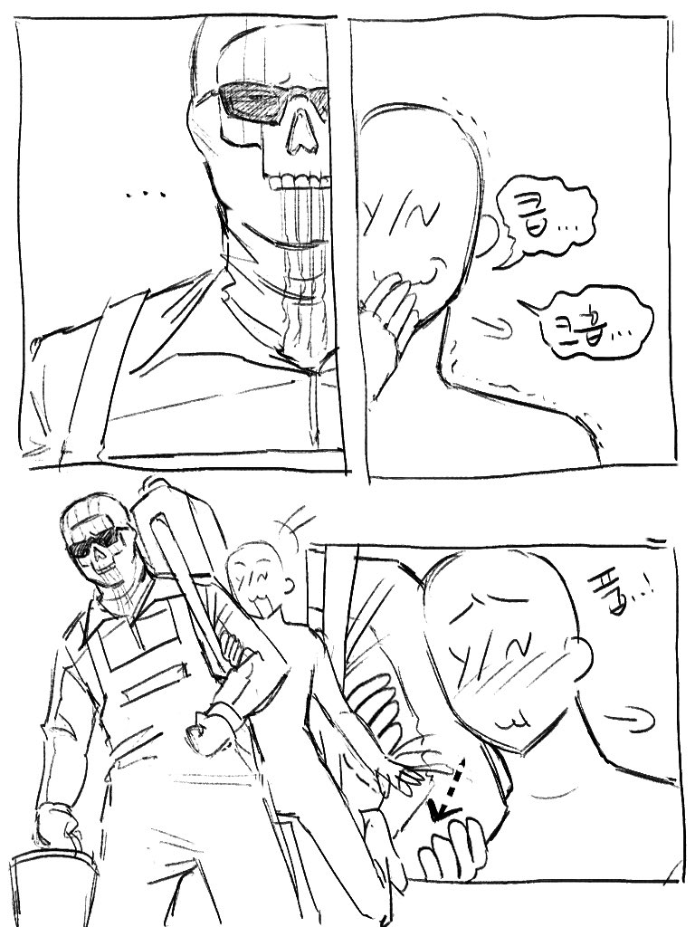 >>6407717 Второй пик - перерисованная сцена из комикса, довольно неприятный момент, когда Гоуста лапала латина и одновременно ему дали в руки череп матери, но его мать на тот момент еще была жива, он же после плена домой вернулся.