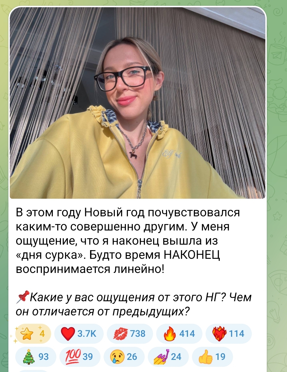 А я верю что Катюха намекнула тут на свадьбу. В интервью она говорила, что еще в первый год отношений ждала на нг от жеки колечко, а он серьги подарил. А тут и 10 лет с отношений, и 5 с помолвки - вполне очевидно,из какого дня сурка она вышла. Значит, церемония уже на горизонте. Только зря Катюха так лыбится - её победа явно Пиррова.