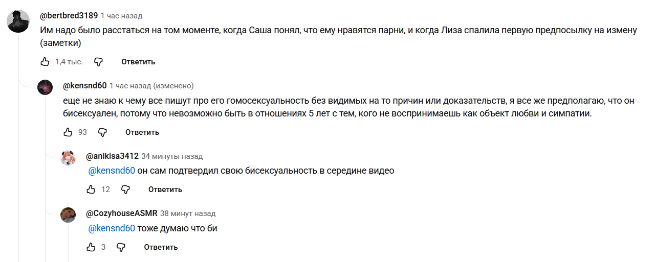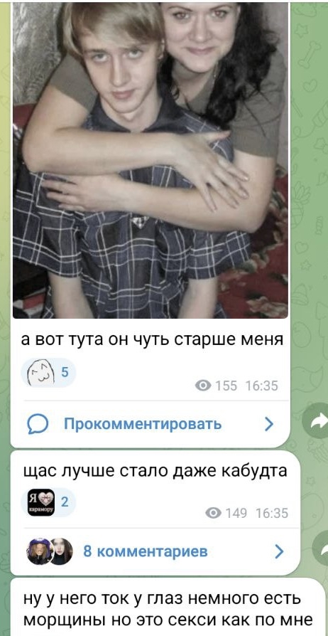 >>6397220 Одна блогерка, на которую я подписана, выкатила пост с его оправдашками. Как раз потому что ыыы, тоталитарная рашка, геям тут тяжело, нельзя за это травить, нельзя аутить. Притом что его никто и не аутил. Но вот эти оправдашки типа он был пидор в отрицании и поэтому может изменять - это пиздец.