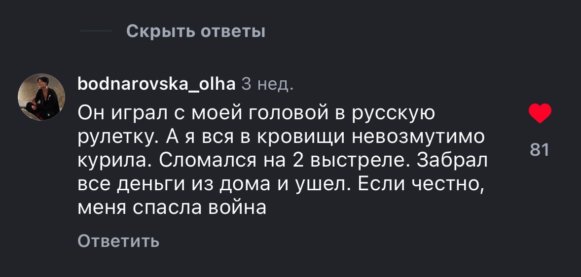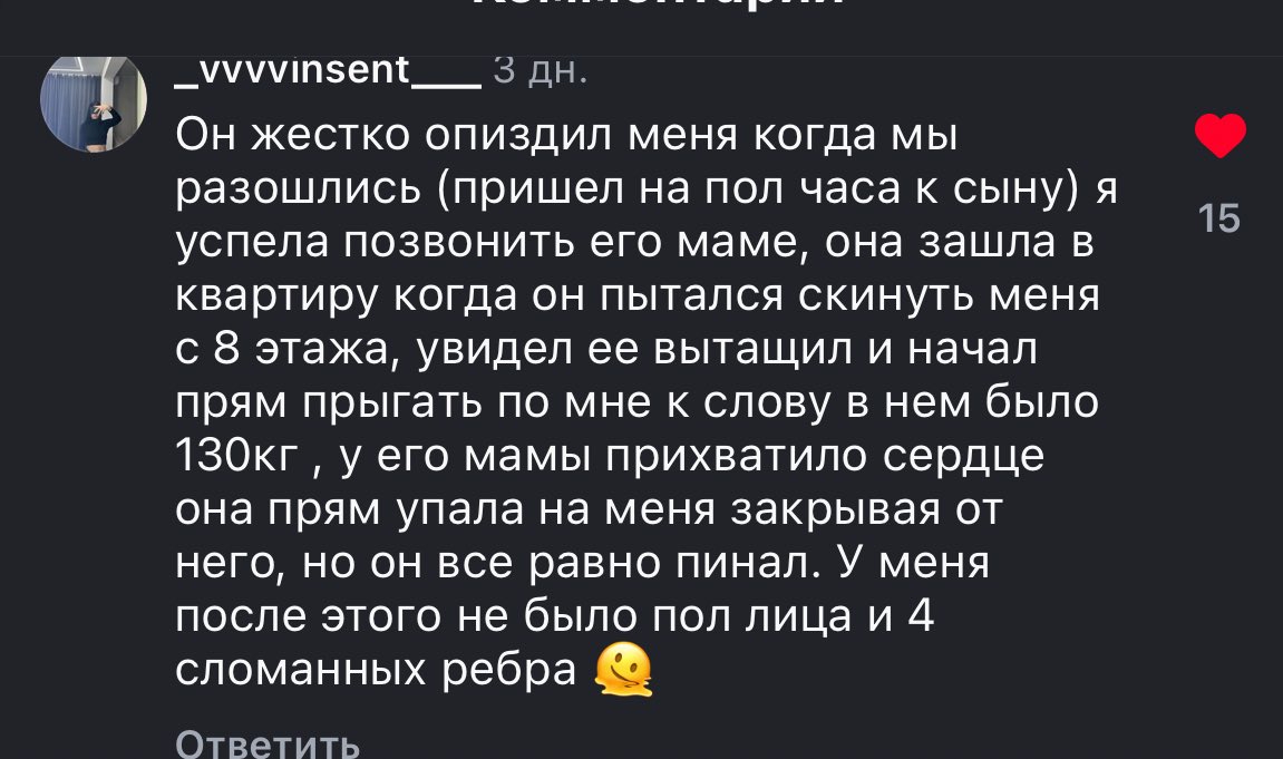 >>6397330 Кстати добавлю, что из-за того, что у нас даже голос ни на кого не повышал в семье, я думаю у меня противоядие от абьюзеров >>6397328 Она его считает сексуальным. Он попал в ее какой-то фетиш. Для нее агрессивный = мужественный. Для таких позорно скорее с рохлей встречаться, чем с таким.