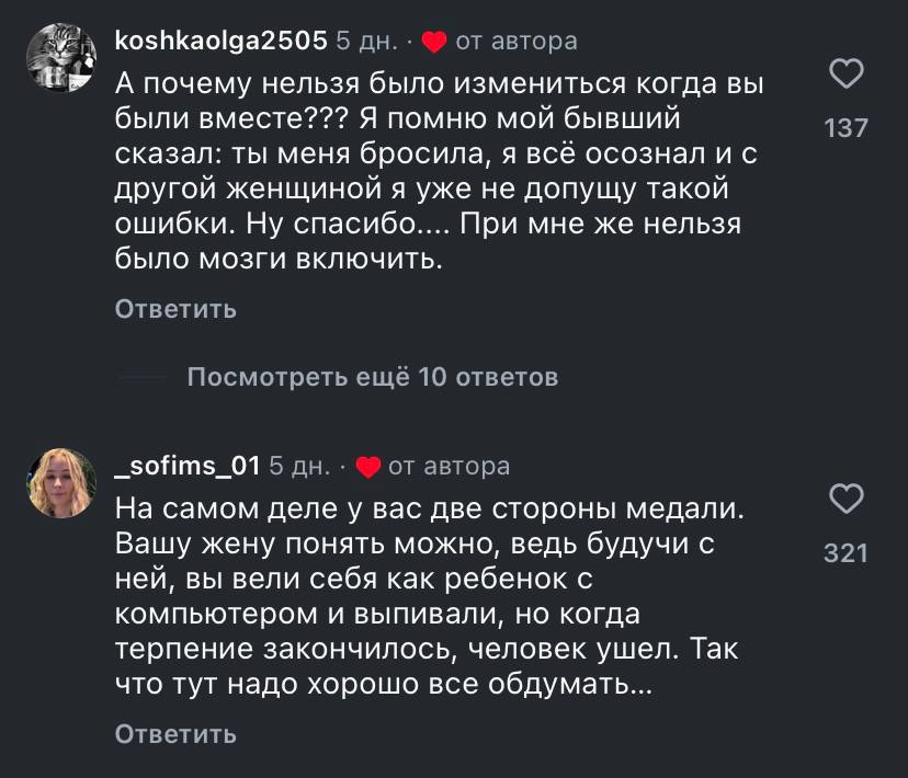 >>6399017 Кстати у меня нет статистики, поэтому сужу по окружению. Так вот я знаю несколько парочек, которые встречались несколько лет и расстались, и потом когда спрашивала их о расставании у кунов всегда один ответ "да чет заебали друг друга, устали, на самом деле к этому давно шло", а у тян всегда "я ждала от него предложения все эти шесть лет...". Я могу понять откуда этот коуп про "он будет помнить о бывшей потому что был с ней аж 4 года", потому что нелегко признаться себе что тебя никогда не рассматривали как постоянный вариант.