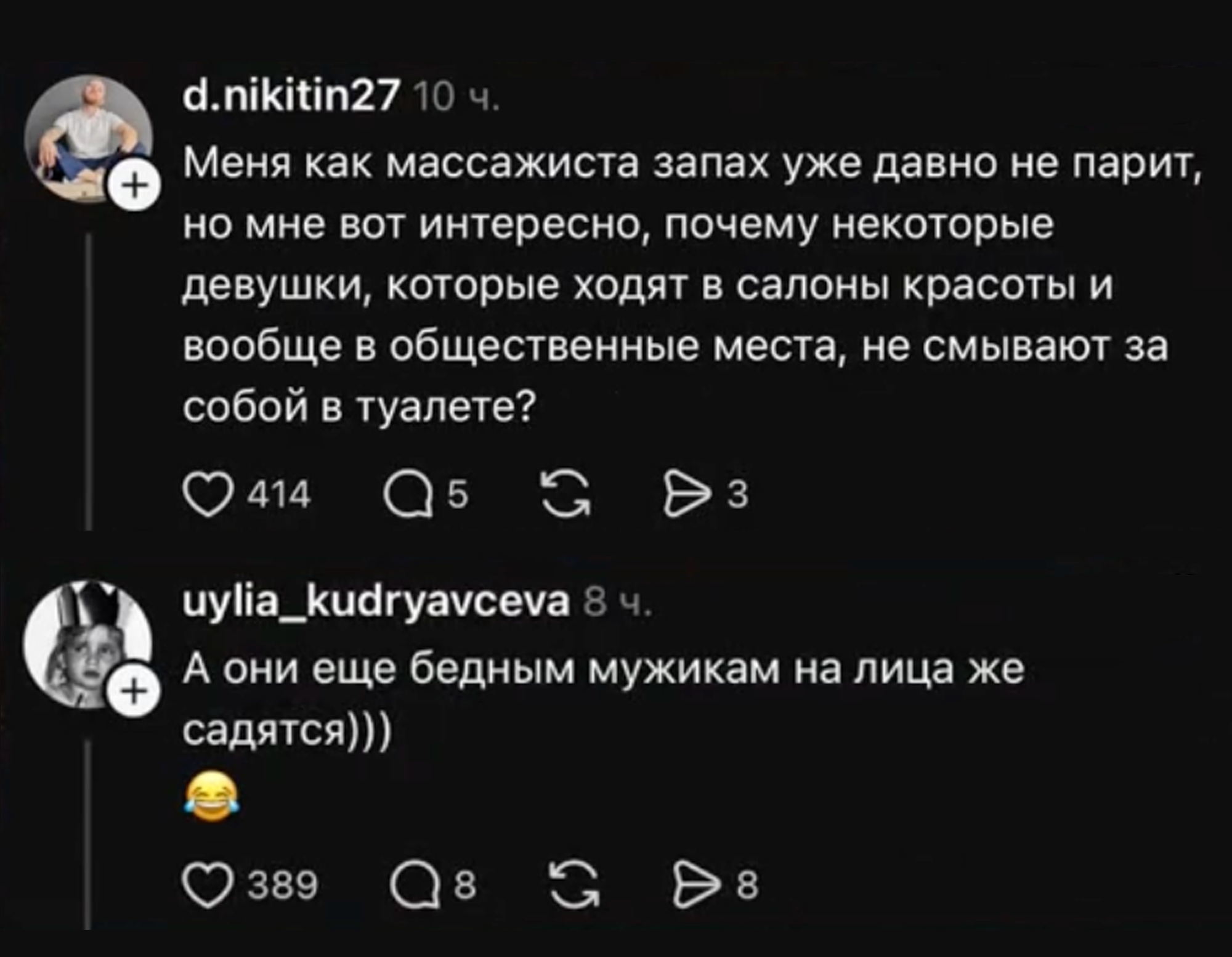 >>6397220 → Одна блогерка, на которую я подписана, выкатила пост с его оправдашками. Как раз потому что ыыы, тоталитарная рашка, геям тут тяжело, нельзя за это травить, нельзя аутить. Притом что его никто и не аутил. Но вот эти оправдашки типа он был пидор в отрицании и поэтому может изменять - это пиздец.