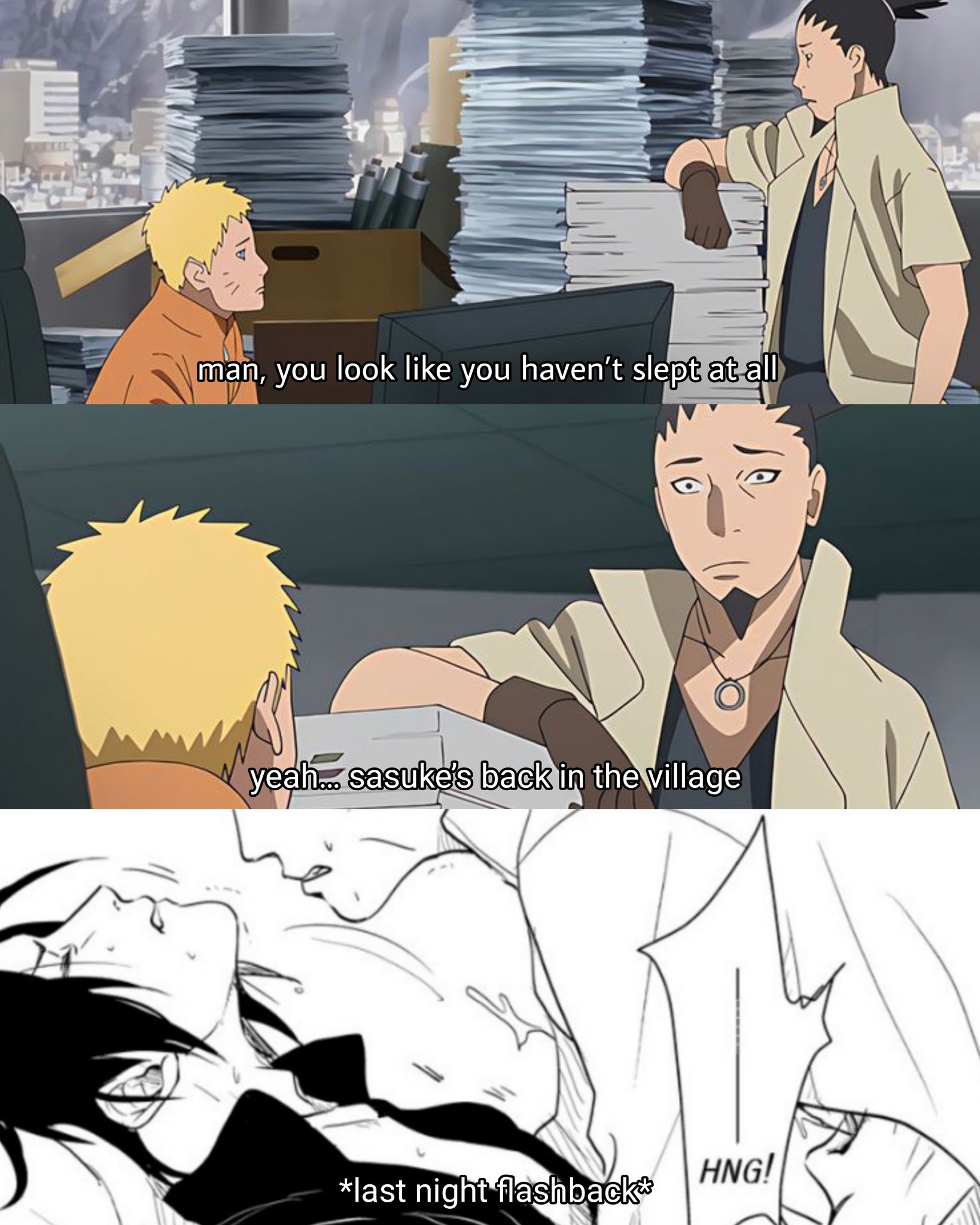 — Эй, темный и brooding, не вздумай свалить опять! — заорал он, плюхаясь рядом. Саске фыркнул, но не отодвинулся. Руки Наруто, теплые, мозолистые от кулаков, легли на плечи. — Ты же знаешь, даттебайо, без тебя я никто.