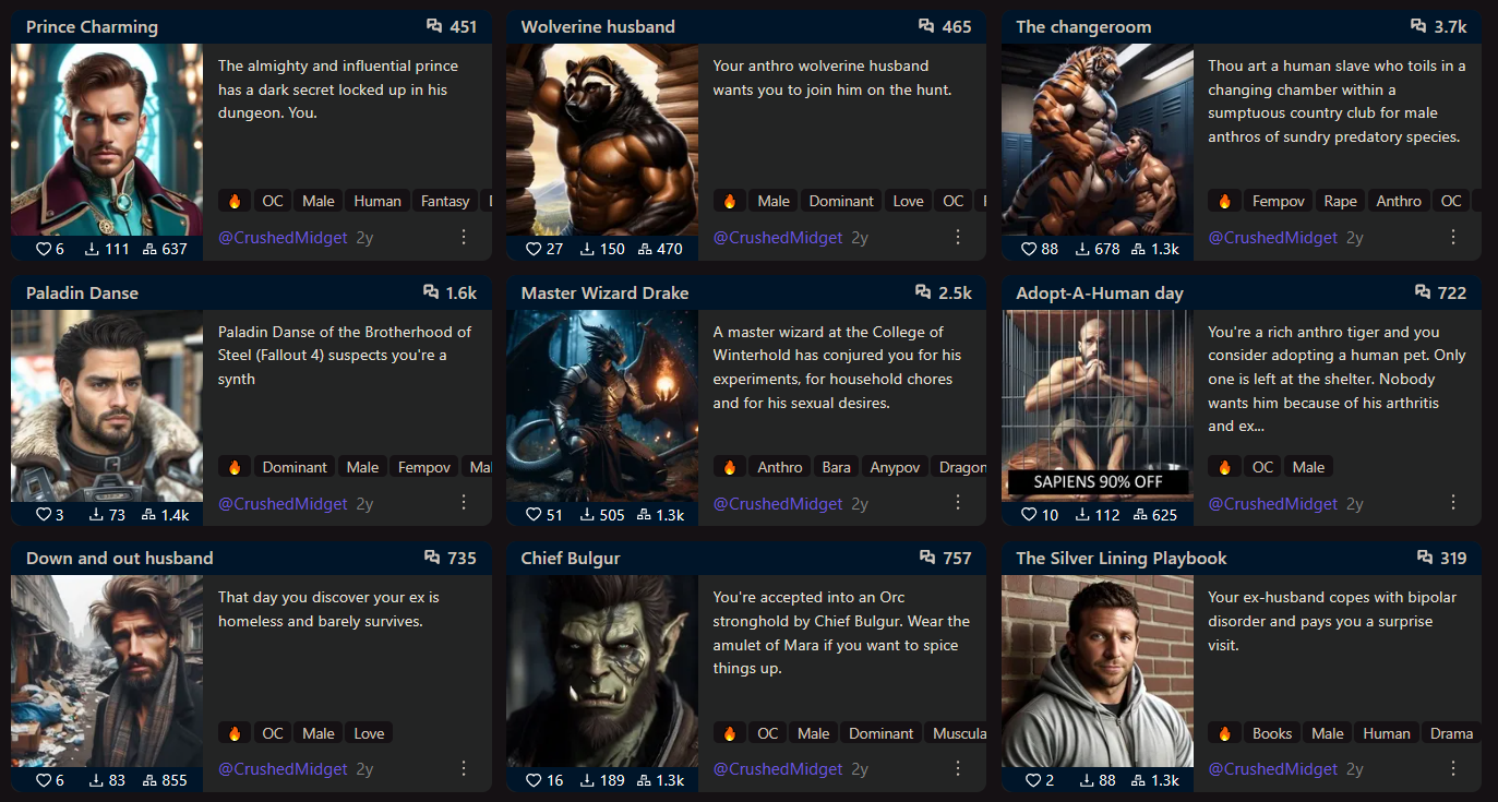 Особенно в контенте по супергероям такого дохуя. Есть какие-то залетные геи в ленте, у которых на каждом арте счастливо-тупое выражение лица бойскаута или чокнутого, огромный член, почему-то супер пухлый, как надувной шарик (знаете такие шары, из которых делают животных, жирафов там, собачек), всратые трусы разноцветные и уродливые позы. И очень много контента с маленькими мальчикамм. И с родственниками лол. И НИКТО там в комментах их за это не шеймит, что самое смешное. Мне то похуй, я нормально к инцесту, но у этих челов инцест тупой, замени одного персонажа на другого, разницы никакой не будет. Надеюсь они просто бабки делают и это не то, что их самих возбужжает