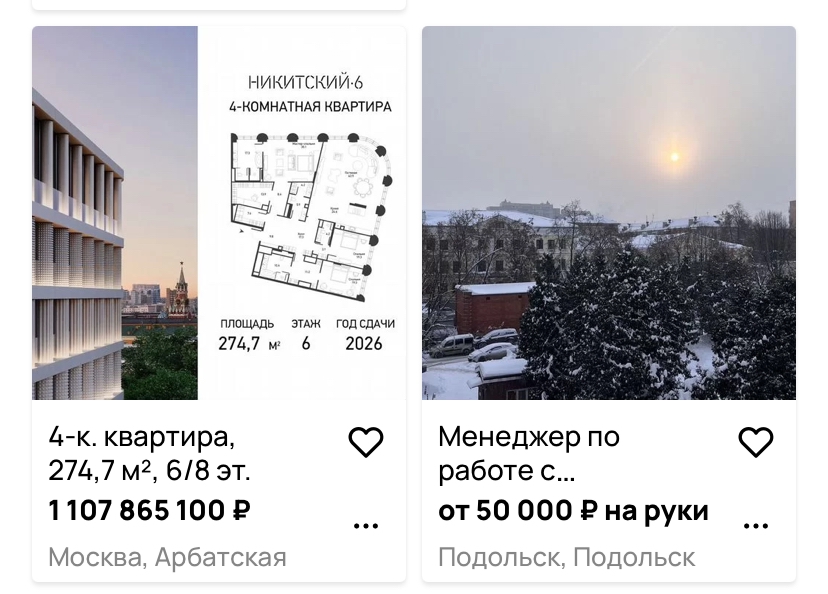>>6414731 База. Разжигание классовой ненависти, мне такое авито подкидывает, у них рекомендации сломались и теперь мне предлагает поработать упаковщицей и купить хату за миллиард.