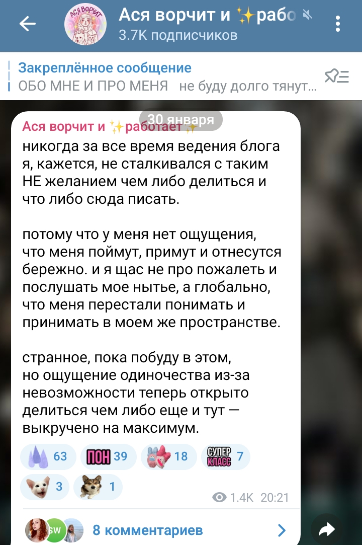 тут сиса писала, что завидует тем, кто зарабатывает легче чем она, а я пиздец как завидую эвелине ещё с пиздючества, когда только начинала за ней следить. она старше меня на 1,5 года, но ещё в школьные времена у неё была такая насыщенная жизнь, всё время где-то с кем-то, куда-то ездила, а меня родители не отпускали. а сейчас я раб 5 на 2 и даже не представляю как вот так просто запланировать поездку куда-то, когда у меня отпуска 4 недели в году, по 2 недели которого уже распланировано. хоспаде, как бы я тоже хотела на масленницу в суздаль, но у меня нет ни друзей, ни времени для такого, плачу
