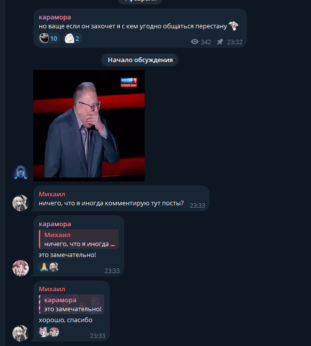 Шизень пока не определилась: Карочмо падает на дно и ей нужна опора или все таки Карочмо на вершине иерархии и мы все смотрим на нее с завистью. Пока скачет туда сюда