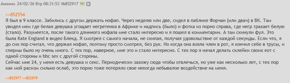 Секс движется в сторону ужесточения и издевательств над женщиной. Матерые шал.лавы рассказывают, что таких ублюдков как сейчас они даже в 90-е не встречали, когда в сауну к братве ездили. Да что там братва, во времена моей юности, то бишь в нулевые, парень который хочет анала был городским ужастиком, типа гроба на колесиках. А сейчас это буквально каждый третий