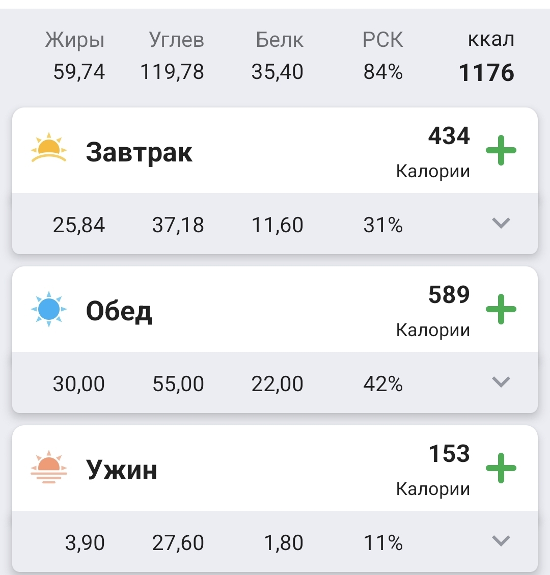 Я тоже решила позаписывать еду, ща 4 день, ебать это сколько ментальных ресурсов отнимает оказывается, что надо все время это помнить и все такое. И это еще я одну доставку жру, где граммы и калории расписаны уже, а мне надо только внести и подумоть, чего сожрать в следующий раз, чтобы не выйти в плюс.