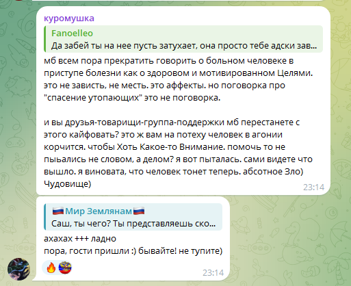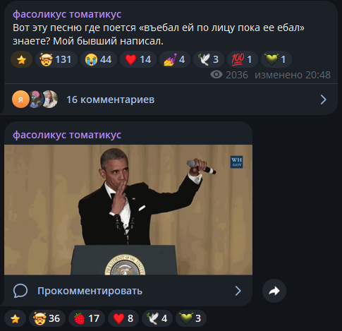 Пиздец Мышь сгорела с хуйни. Недавно мужа заставила удалить тикток с рандом тян (которая его в туре сопровождает, менеджерка или хз), потому что там комментарии были "а как же Саша?". Сразу после этого запостила их фотки с подписью immortal family. Теперь вообще публично прыгает на Айшу. Сам Слава тоже нервный, ходит срется с ноунеймами в комментариях, ещё и во время тура. А писала, что матерью планирует стать в 26, вот это уровень зрелости.