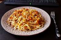 >>294287добавляю лук и чеснок, жарю, вливаю вина чтобы деглазировать и выпариваю его, посыпаю мукой, обжариваю ее, потом добавляю воду или бульон, томат-пасту или добавить воду и сметану, или просто сливки, специи и готово, можно без жидкости а тупо помидоры нарезанные добавить, в общем заполнитель уже на любой вкус