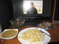 Плов на сливочном и оливком маслах, без мяса, но с овощами с устричным соевым соусом марки HADAY. Котлеты из трески, с устричным соусом. Рислинг Кабинет 2005 года, после него - обострение и пиздец.