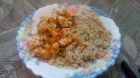 Нищебродский обед.Тушёная куриная грудка с морковкой, луком, чесноком и зеленью.На гарнир киноа с булгуром.