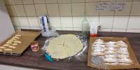Утилизация сосисок и молока. Точнее, предполагалось, что это молоко, но оно скисло и поэтому получилась нетипичная структура теста.