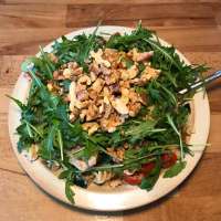 Еще кое-что. Паста-салат с грецкими орешками, рукколой и цуккини.Крем-суп из тыквы, картофеля и кольраби.