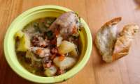 >>587140 Это не жаркое. Просто тушёные овощи и мясо в казане. Мякишь пропитан чесночный маслом, он плотнее стал из-за этого, потому так выглядит. >>587145 Небольшой казан, хватило как раз наесться на двоих взрослых и двоих детей.