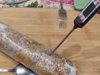 >>638322 Спасибо! Это вот такой кусок, вроде бы называется карбонад. Сначала обжарил на сковороде и потом в духовке 150 градусов до 70ти внутри запекал, дыра от щупа все верно. Готовил вчера а сегодня просто в микроволновке разогрел, то есть оба раза ел горячим.