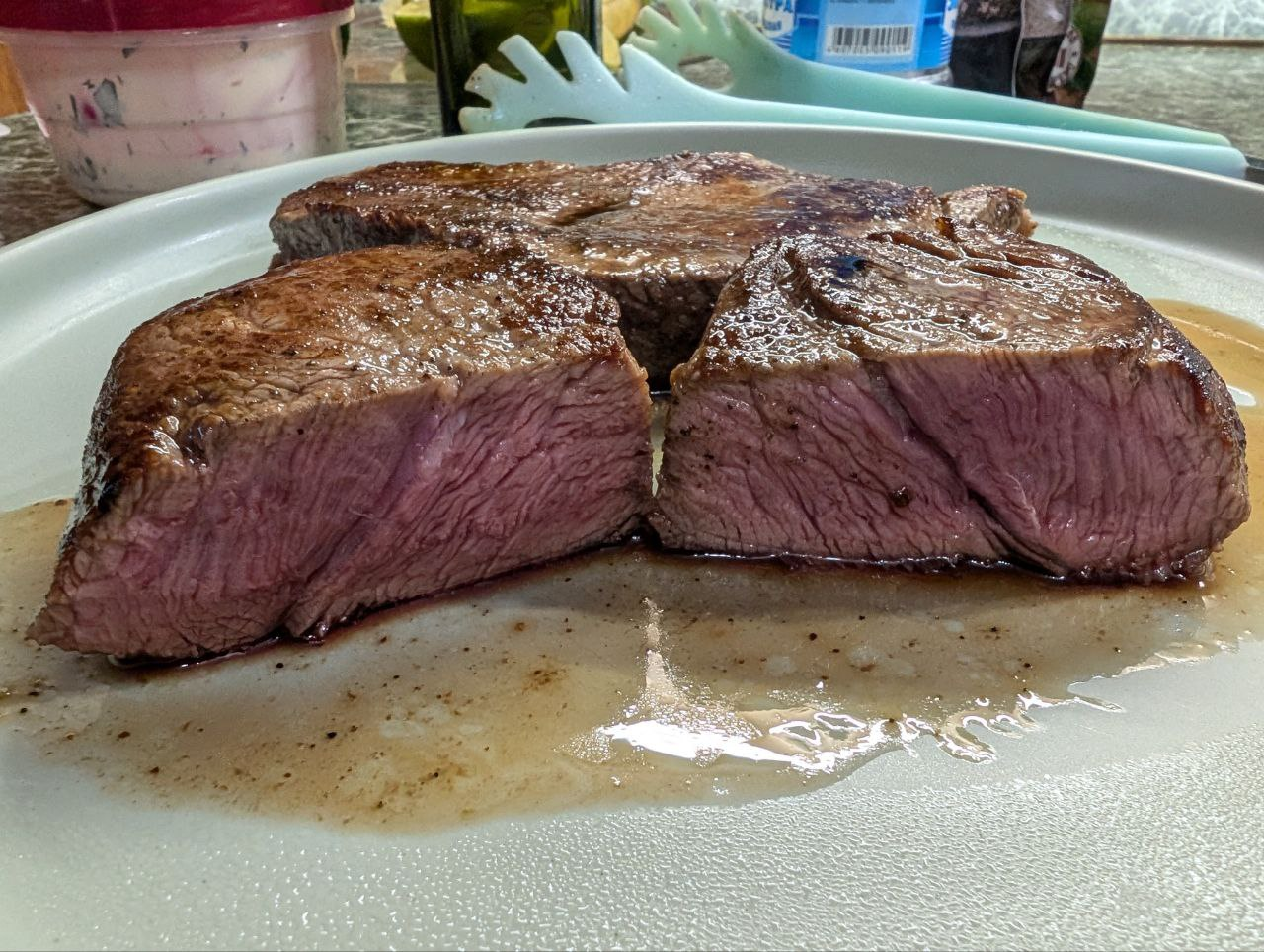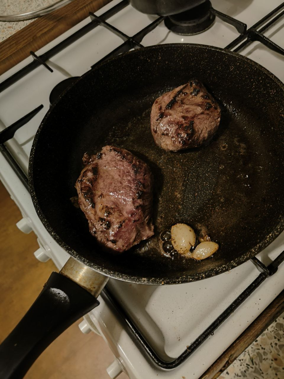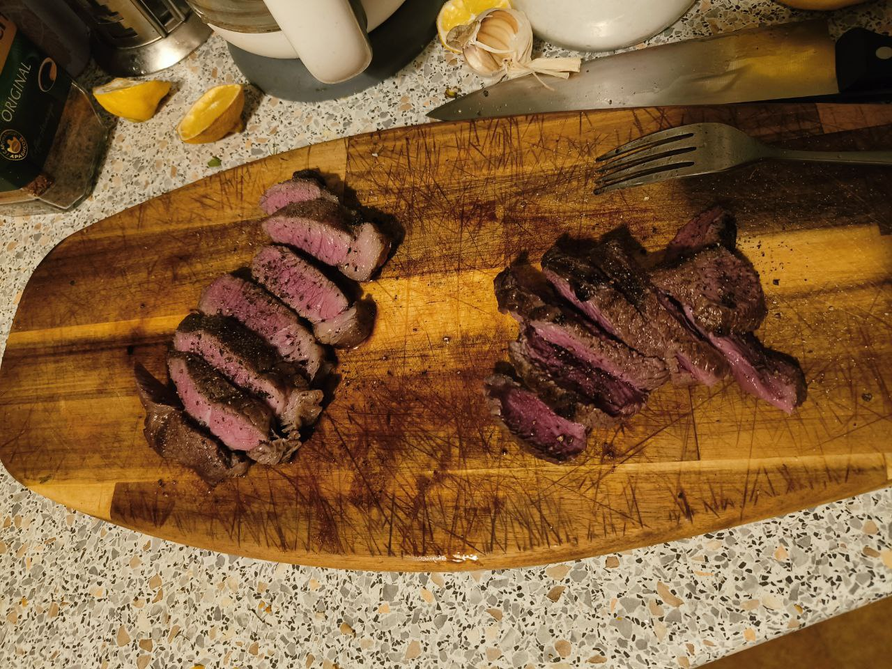 Самый вкусный стейк в моей жизни! Это какой-то разъеб. Вроде научился жарить, но тут купил сувид. 30 минут при 52 градусах, затем 1.5 минуты с каждой стороне на сковороде грилль и сливочном масле. Дал отдохнуть 5 минут, посолил, поперчил. Мясо - обычный чак ролл.