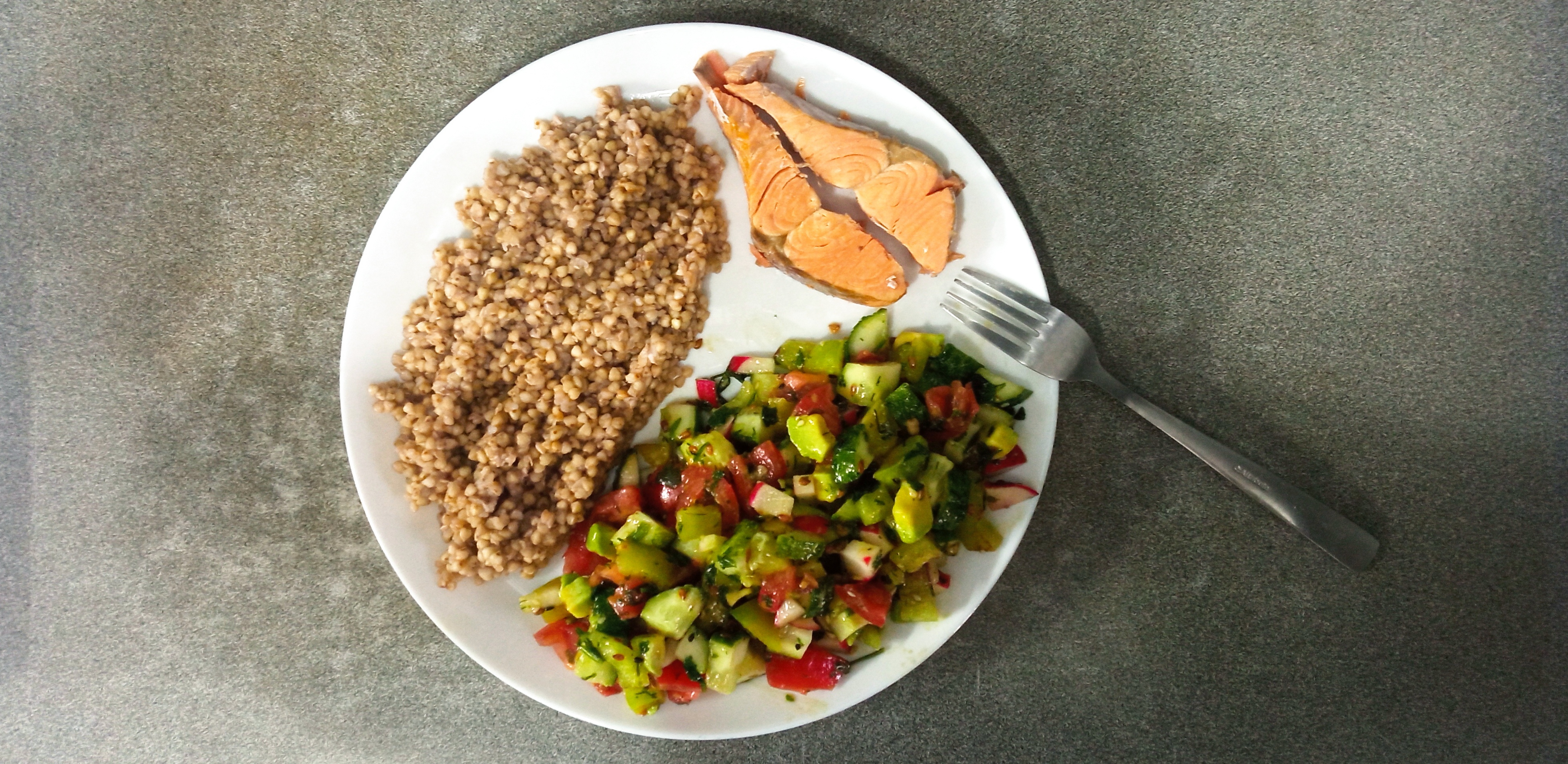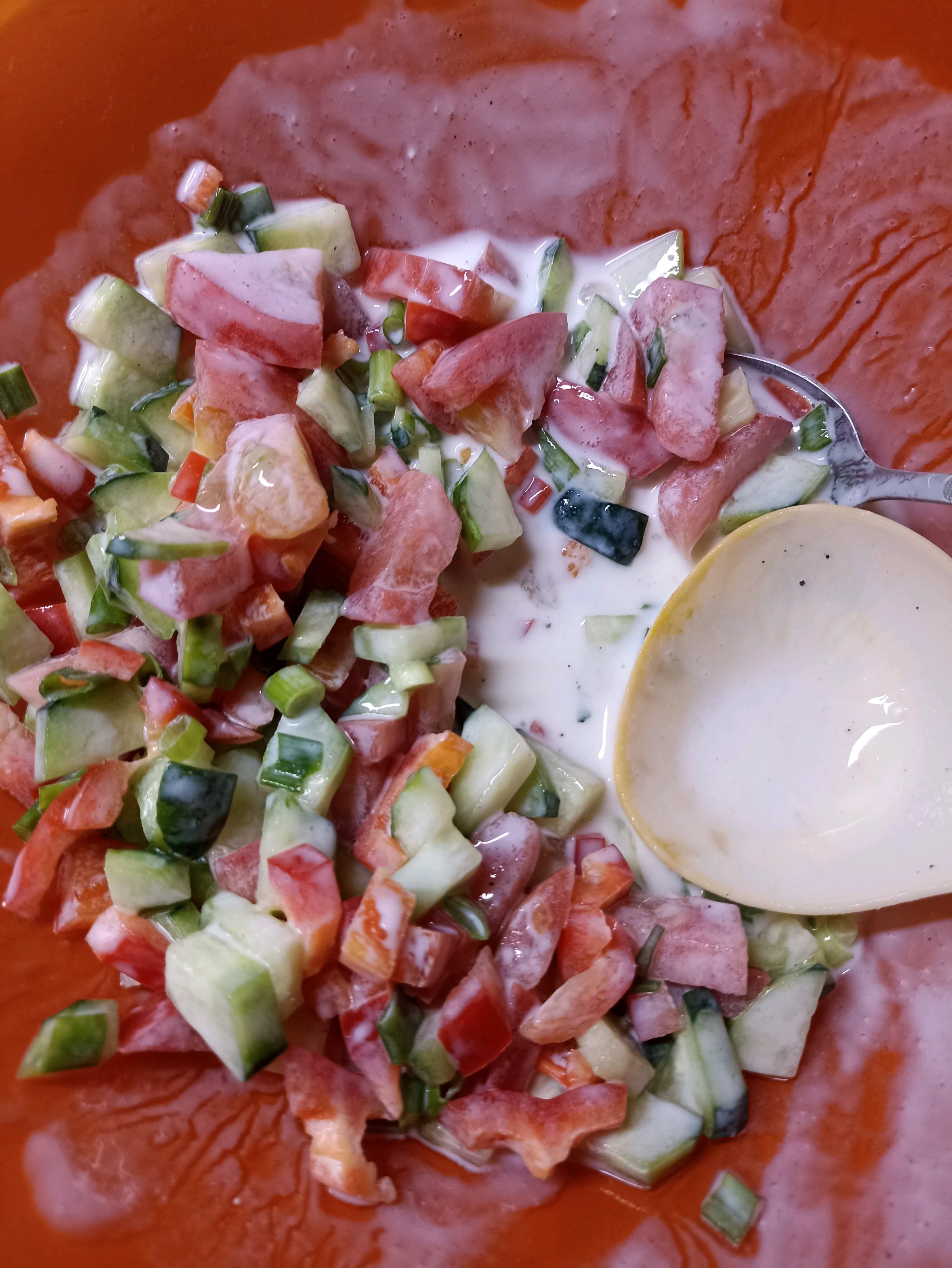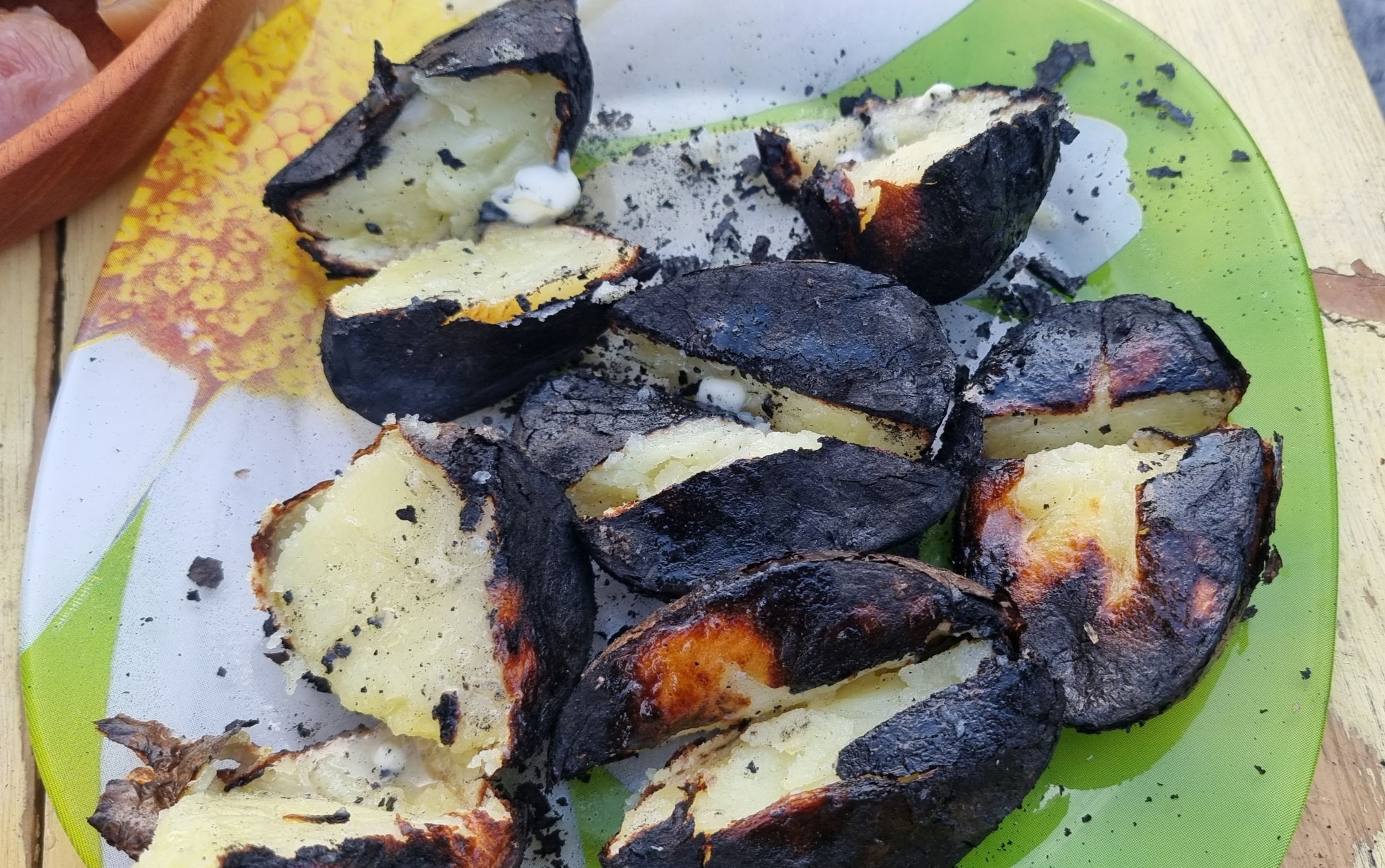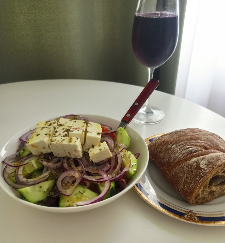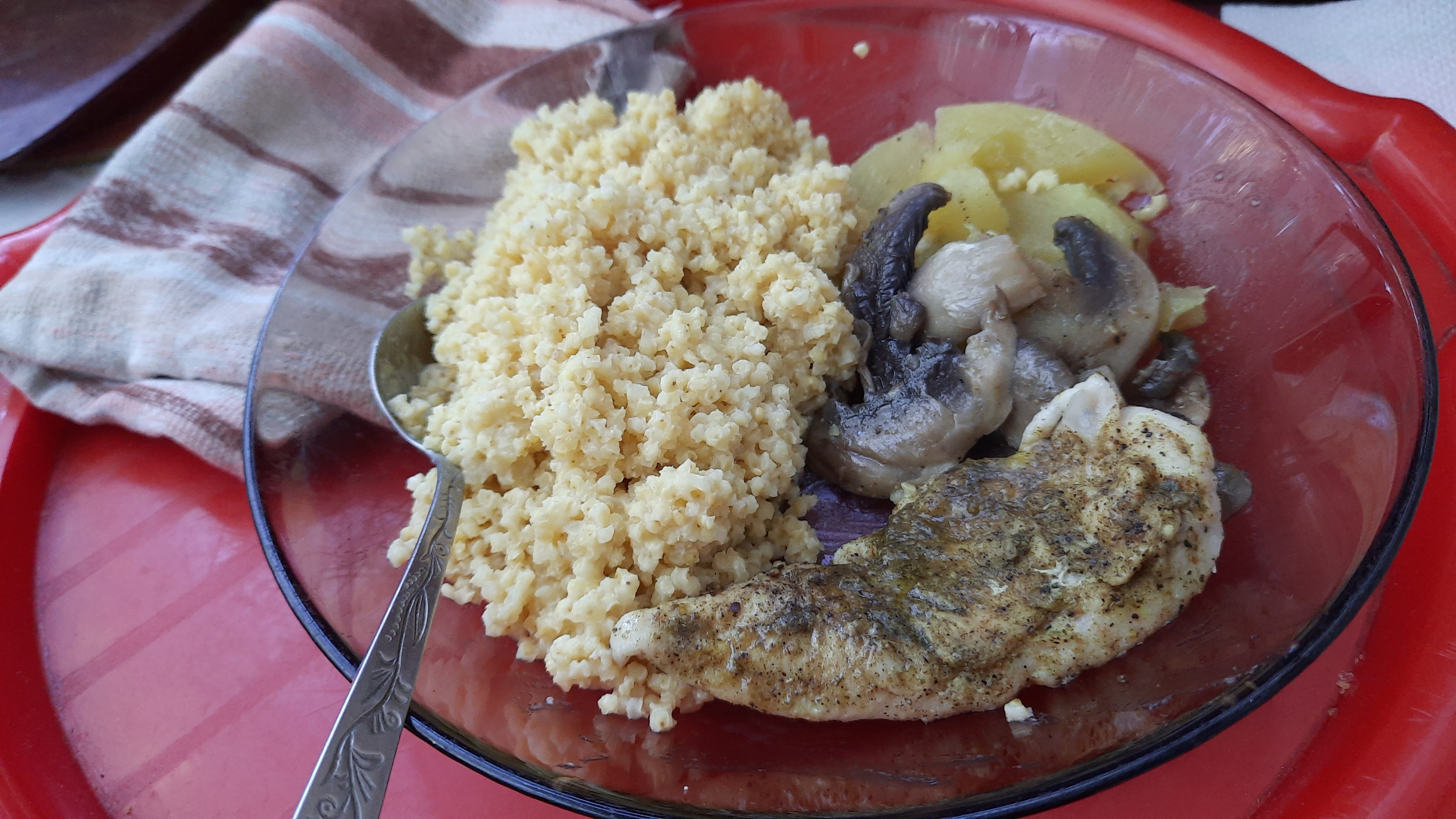 Вторая половина утренней куросиськи, картопля, салатик в этот раз без лука и картофельный хлеб, дабы было что в жижку макать