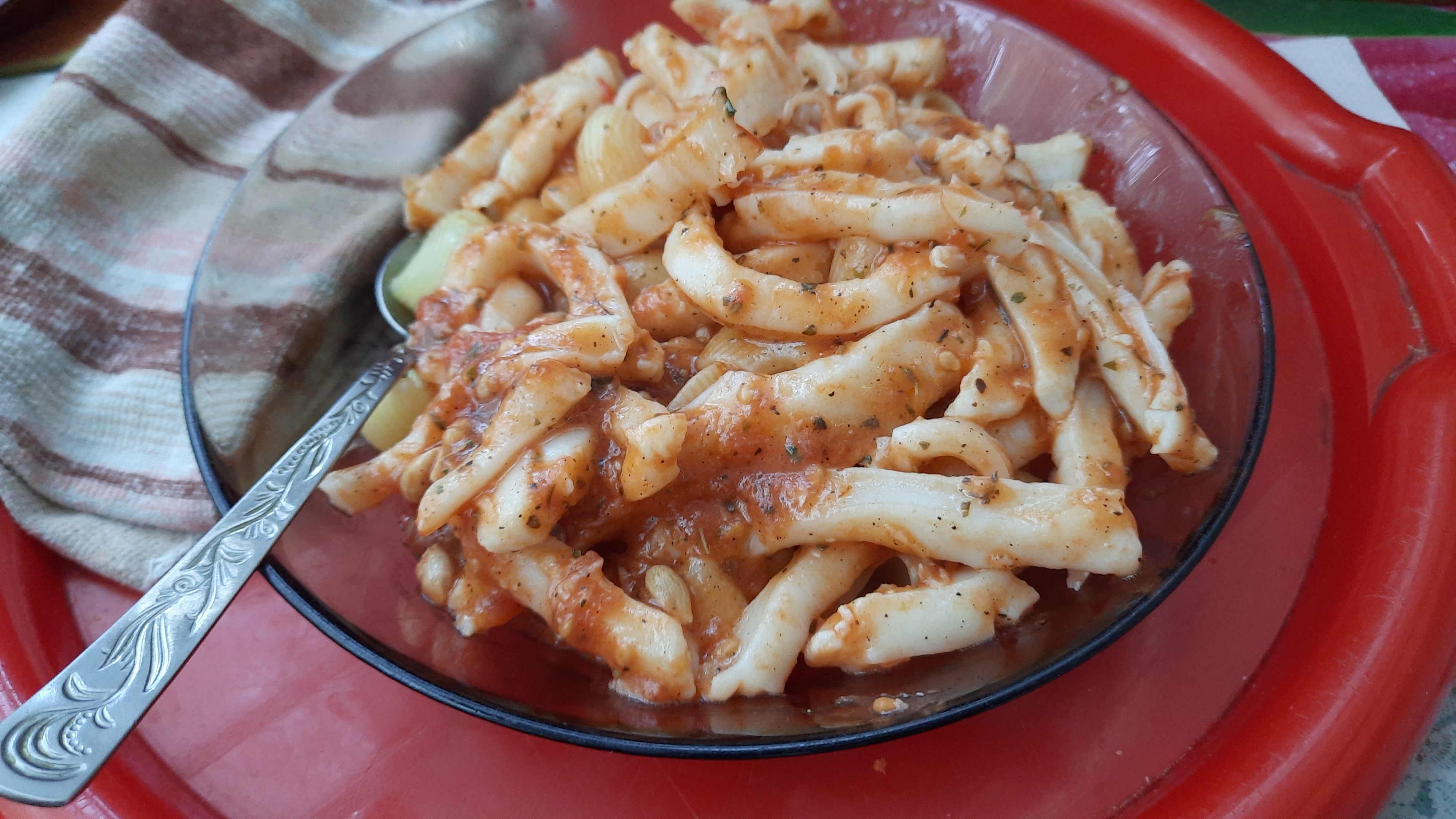Увидел прикольный рецепт быстрого соуса и одновременной готовки кальмара - обжарить быстро тертые помидоры минуту, минуту кальмары порезанные, добавить честнок со специями и еще минуту подержать - готово.