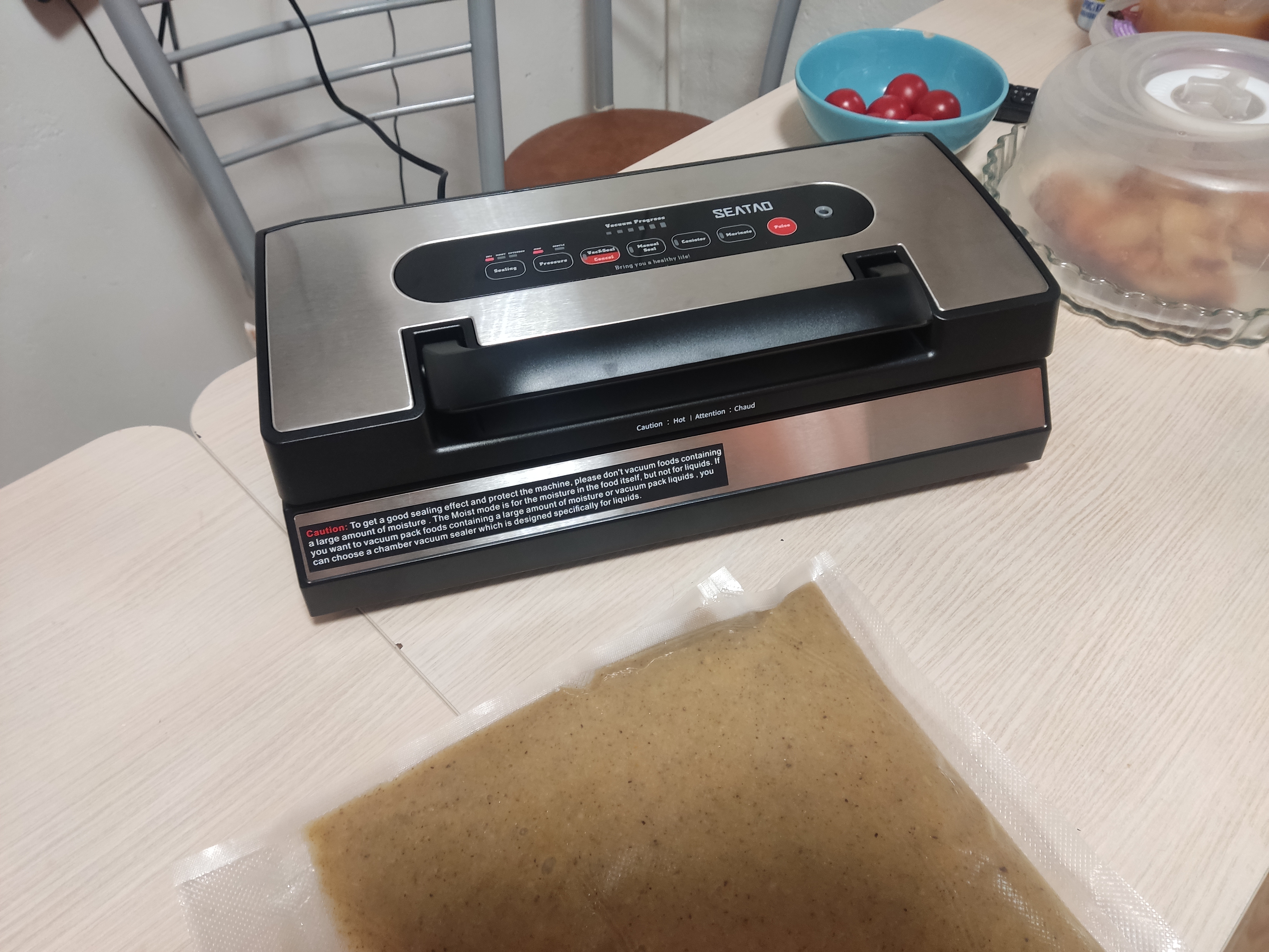 Наконец-то ко мне доехал йоба-вакууматор, а то уже просто заебался сувидить курицу в обычном кульке. Затестил на густом грибном супе — из пакета весь воздух откачал, но в самом осталось несколько мелких пузырей Будет интересно затестить на курице с маринадом — дешёвый из пакета весь воздух высосать не мог
