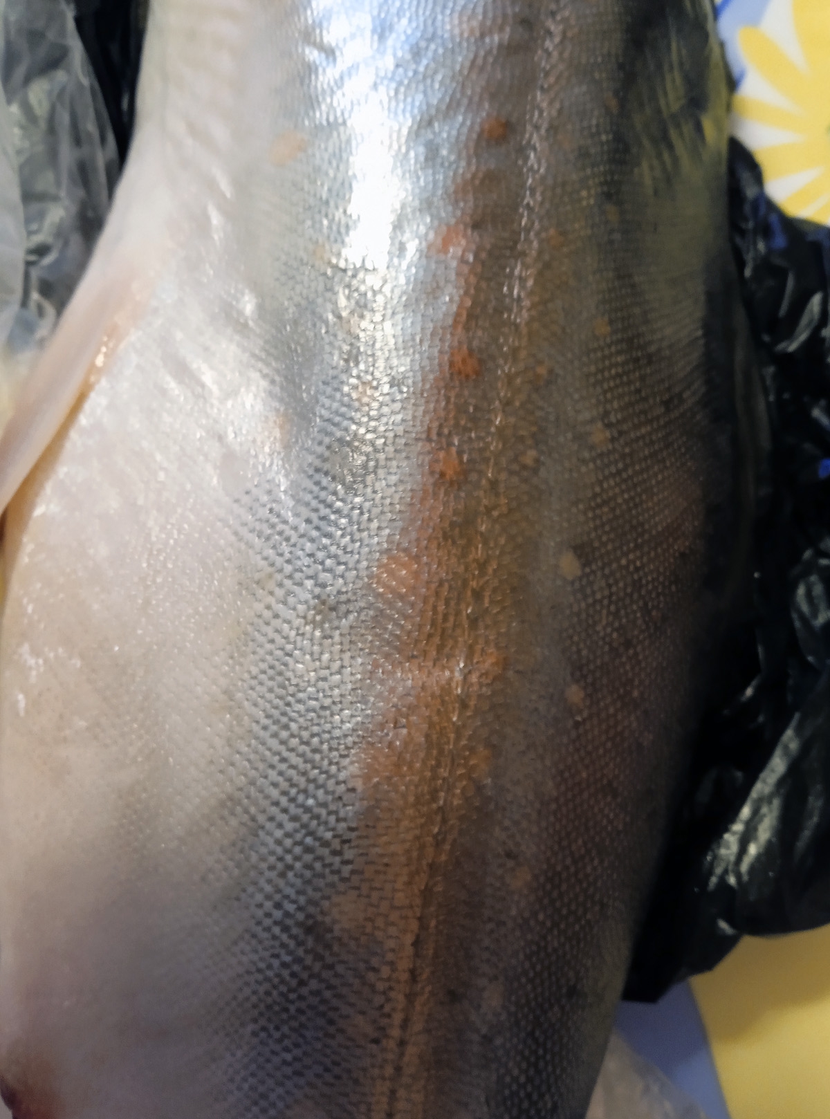 Заехал на рынок к своему продавцу, он говорит, что нерку везти вообще не будет, говорит цена от поставщика на ДВ - 1000, значит здесь ценник вообще космос будет, типа никто брать не будет. Кижуча ловят в сентябре, его как всегда подождем. Скумбриевич с сентября по февраль, тоже ждем. Говорит под видом чавычи много где пытаются впарить более дешевых лососей типа кеты, ну и ценник у нее чуть ли не выше чем у семги. Предлагал чилийскую форель, я то всегда брал только дикую рыбу, а эта аквакультурная, но он говорит с экологичностью там все норм, хз верить нет, покупаю рыбу у него не первый год, еще не обманывал. До 3 кг - 1000, от 3 и выше - 1200, но говорит она реально жирная. Еще заехал в метро, там в морозилке лежали семги февральского улова, одна была 6кг с головой - вот это лошадина! Для разморозки, чтобы влезла в холодос, точно пилить бы пришлось. Продолжаю вести наблюдения.